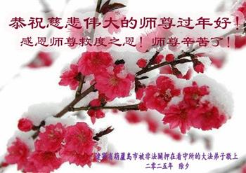 恭祝慈悲伟大的师父过年好! 黑龙江省大庆市被非法关押的大法弟子敬上 吉林长春一被非法关押的大法弟子恭祝师尊过年好!