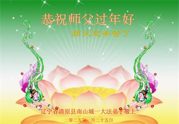 【明慧网二零二五年二月一日】 辽宁省抚顺市新宾满族自治县一大法弟子及家人恭祝慈悲伟大的师尊新年快乐!