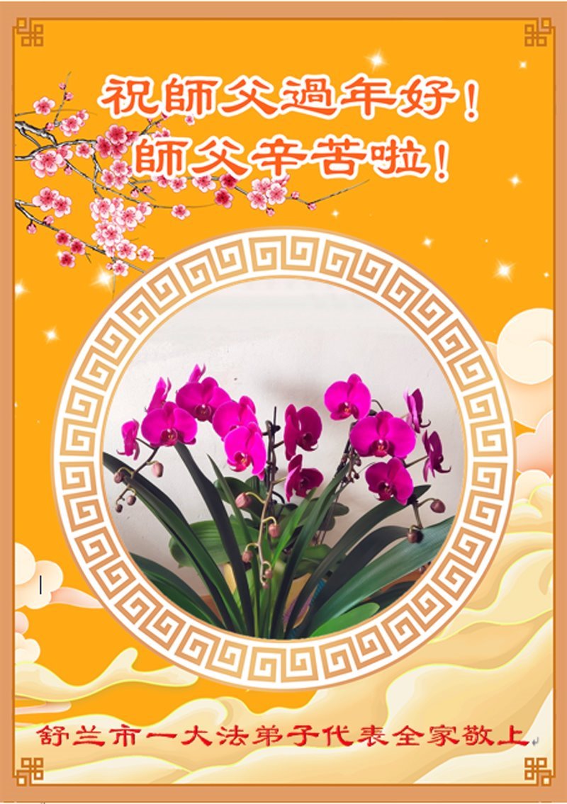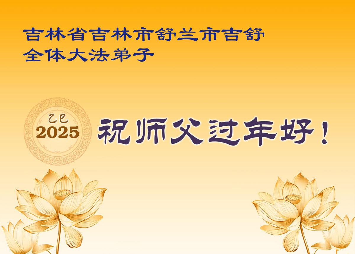 【明慧网二零二五年二月一日】 吉林省吉林市舒兰市一大法弟子全家人恭祝师父过年好!