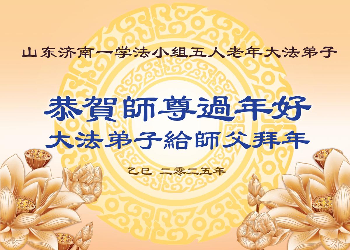 一学法小组五人老年大法弟子恭祝师尊新年快乐! 我无法用语言来表达对师尊的感激之恩,弟子唯有 做好三件事学好法、整体配合好、精進以报师恩!弟子叩谢恩师! 二零二五年一月二十六日 山东省济南一大法弟子恭祝师尊过年好!