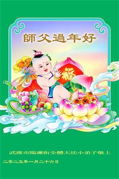 在新的一年里,弟子要正念正行,助师护法。 湖北武汉大法弟子叩拜 二零二五年一月二十九日 湖北省武汉市汉阳区一大法弟子恭祝师父新年好!