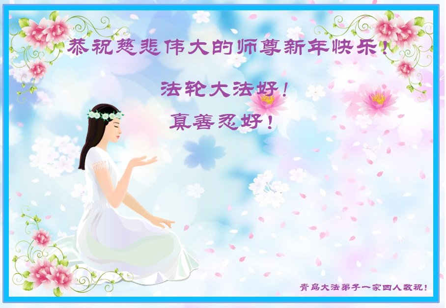 山东省青岛市大法弟子及家人恭祝师尊新年好!