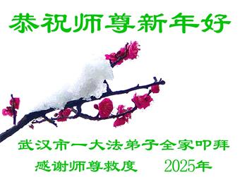 湖北黄冈市黄梅县刘佐乡全体大法弟子叩拜 二零二五年一月二十七日 湖北省武汉市武昌区一大法弟子的家属恭祝师尊新年好!