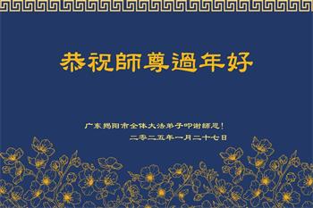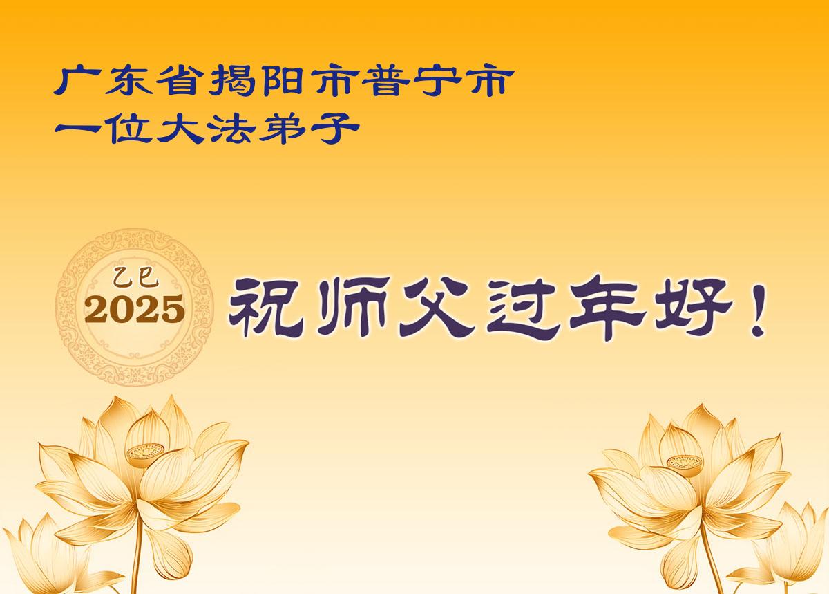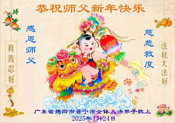 弟子们一定不辜负师尊的嘱托,信师信法,做好三件事,助师正法,铲除全部邪恶,救度苍宇众生,兑现洪誓大愿! 广东省揭阳市普宁市一位大法弟子恭祝师父过年好!