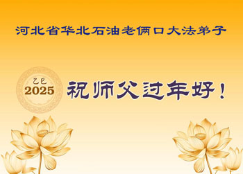 河北省华北石油老俩口大法弟子叩拜 二零二五年一月二十七日 河北省承德市承德县一大法弟子的儿子恭祝师尊过年好!