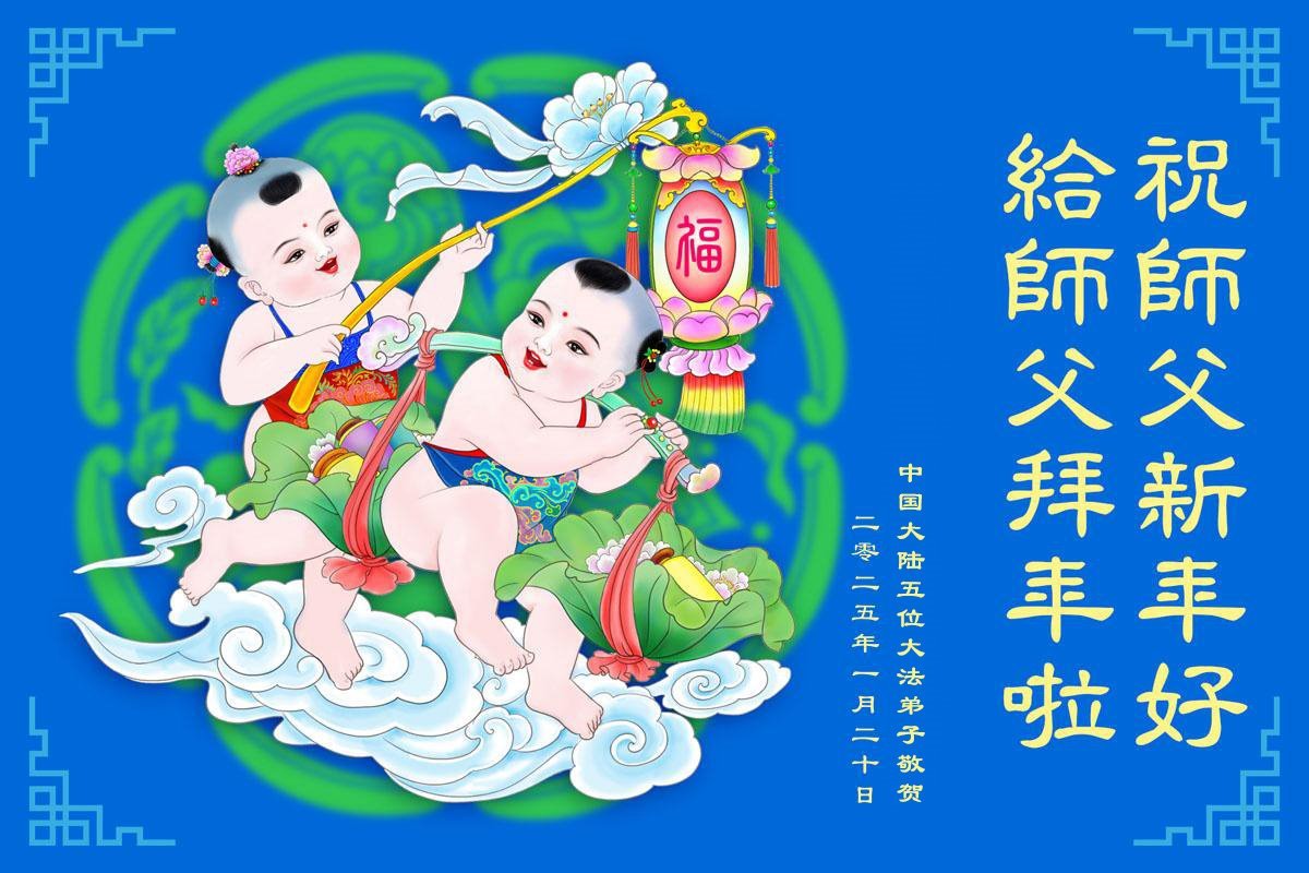 恭祝慈悲伟大的师尊过年好! 祝愿新的一年,法轮大法更加洪传,荡去一切邪恶与污浊,造福每一个人。 大陆两位大法弟子叩拜 二零二五年一月二十日 大陆五名大法弟子恭祝师尊过年好!
