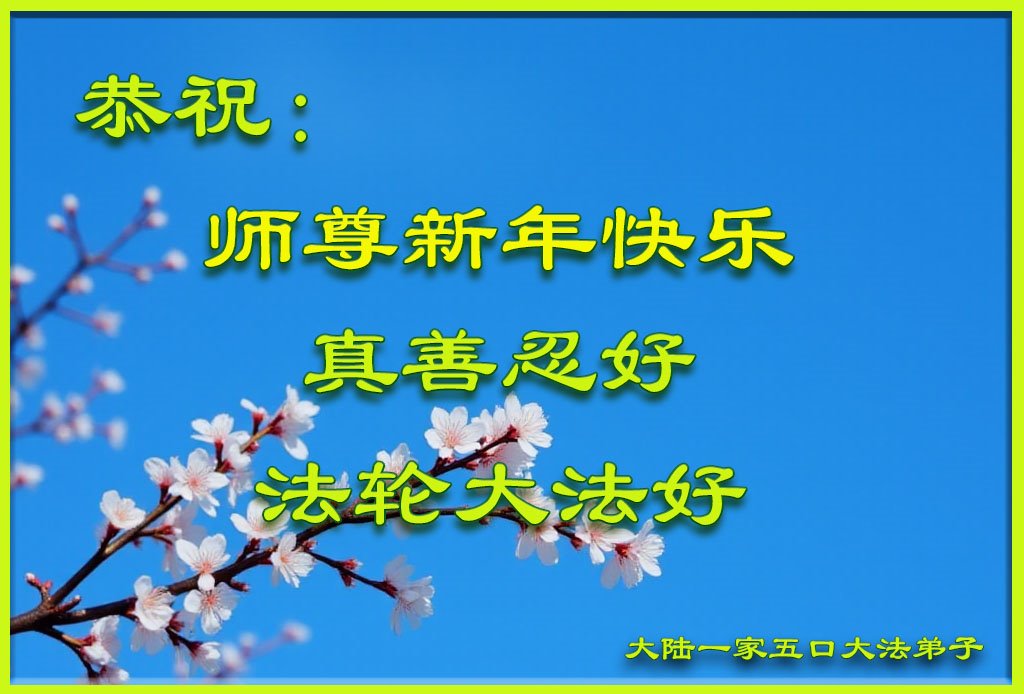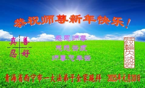 师尊辛苦了!在新的一年,弟子更加精進,做一个合格的大法弟子。 青海省西宁市一大法弟子全家恭祝慈悲伟大的师尊新年快乐!
