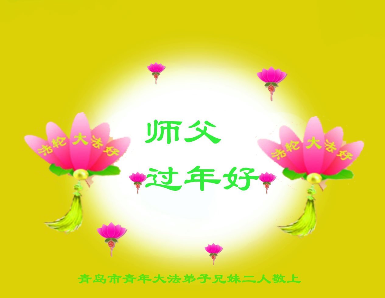 恭祝师父新年快乐!感谢师父慈悲救度与保护,谢谢师父! 山东省青年大法弟子敬上 山东省青岛市兄妹二人青年大法弟子恭祝师父过年好!