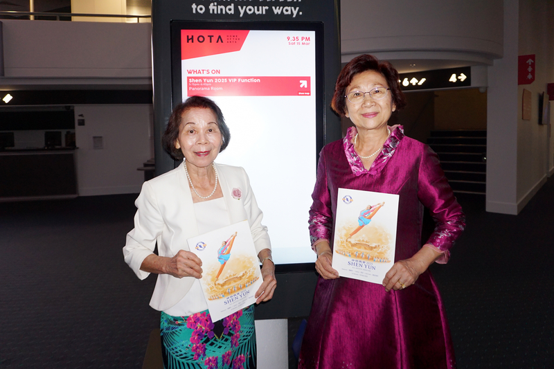 徐佑典大使感佩神韵不畏中共打压,坚持做对的事情,势必赢得越来越多人的支持,“神韵演出里面,其实有很多的讯息,跟台湾现在所面临的情况也是息息相关。面对这些胁迫打压,我们能够勇于为自己发声,做对的事情,我想这是我们看完神韵演出之后,最大的一个感动跟体会。” 他还说:“我知道神韵即将到台湾去演出,所以我也期望我在台湾的朋友家人都能够一起来欣赏。” 中华民国侨务委员:神韵让世界知道中华文化的精彩 .纪.元;)'> 图16:二零二五年三月十五日晚,中华民国侨务委员陈秋燕女士(右)与侨务委员徐瑞云女士在黄金海岸观赏了神韵演出。(大.纪.元;) |