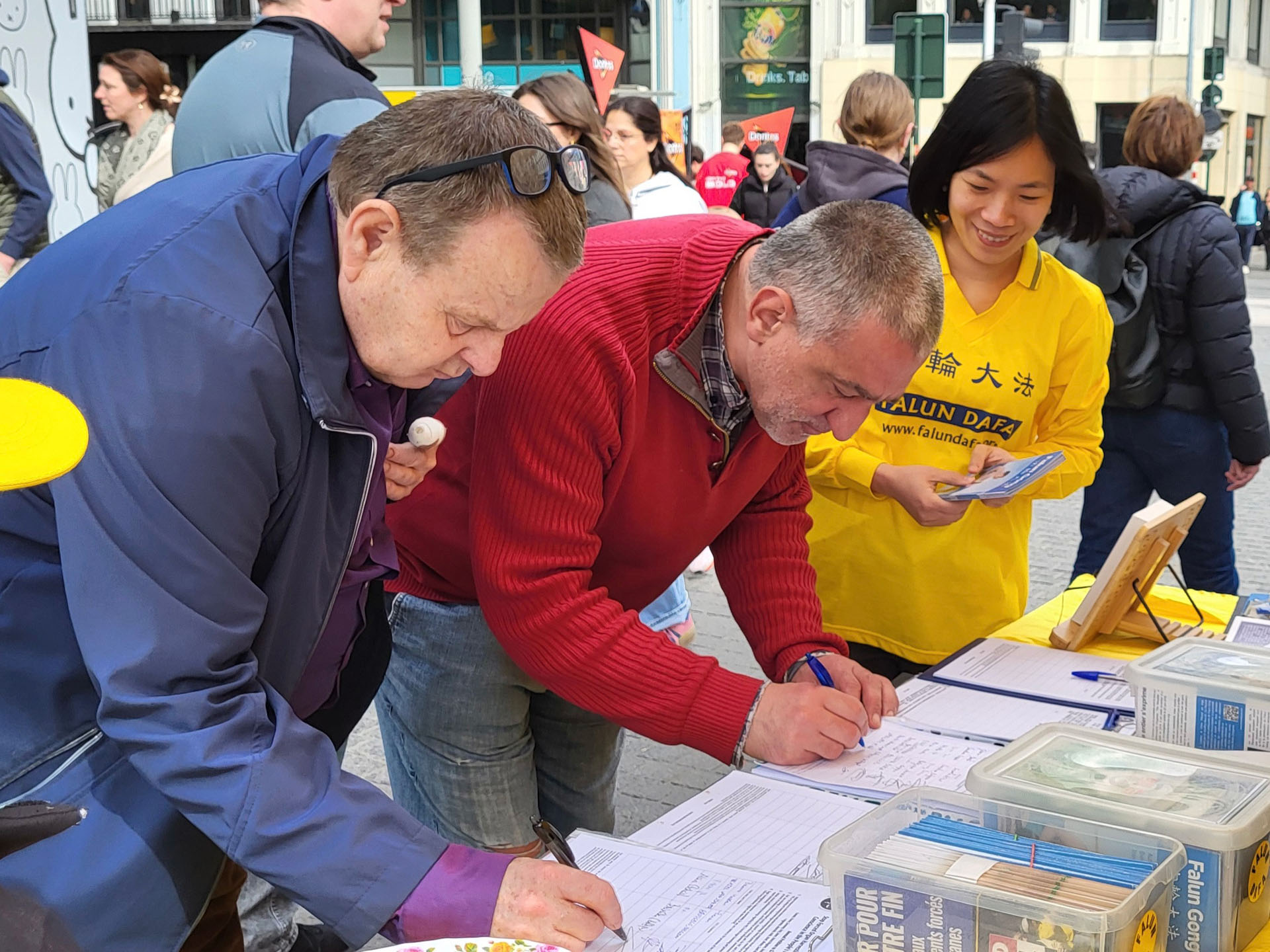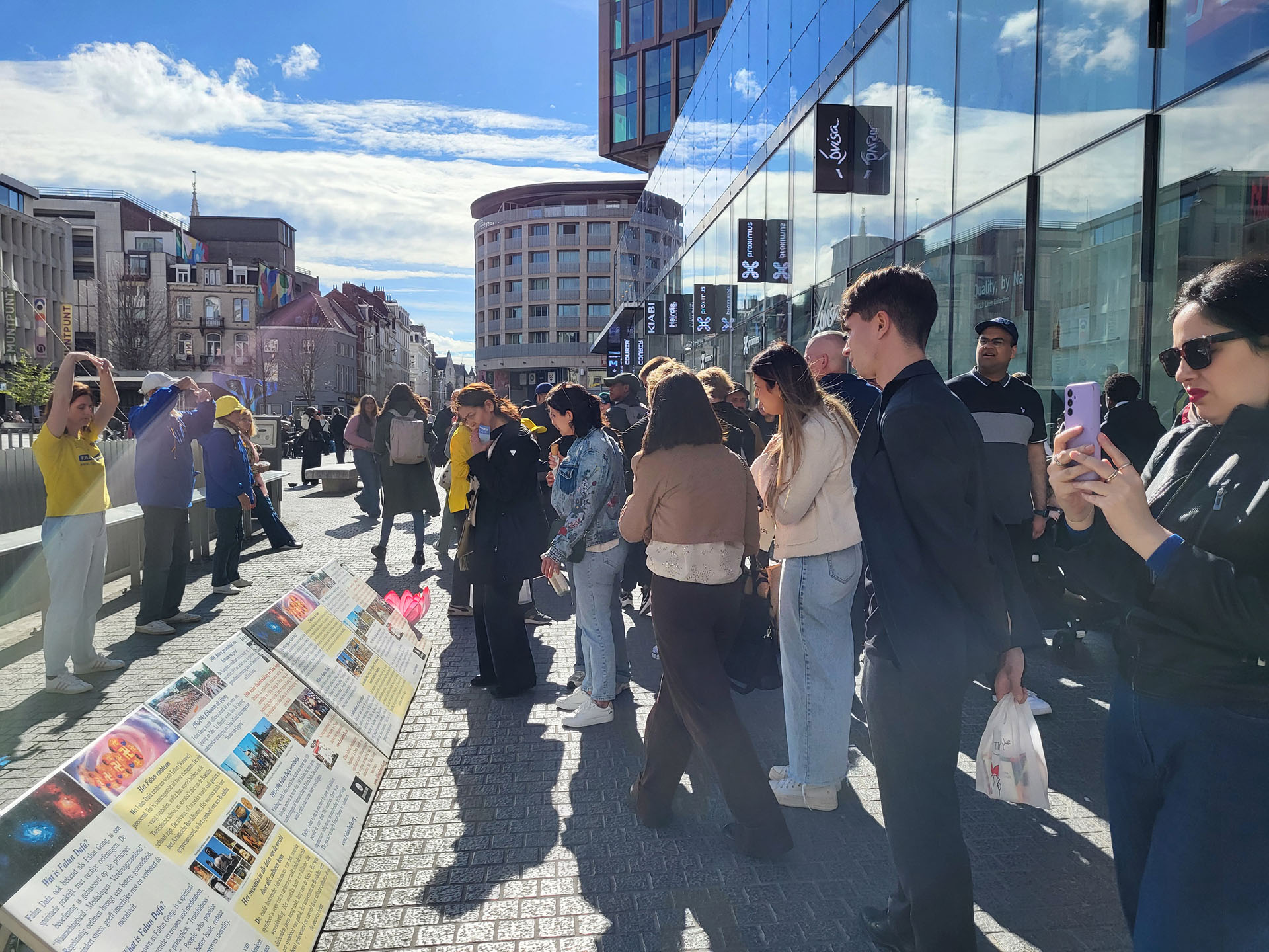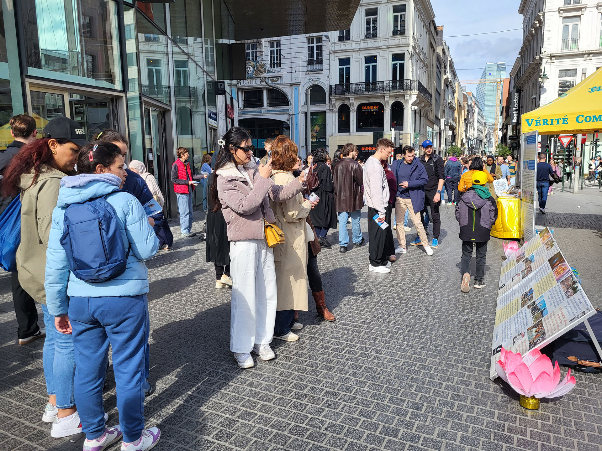 【明慧网二零二五年三月二十六日】(明慧记者唐容布鲁塞尔报道)二零二五年三月二十二日,法轮功学员在比利时布鲁塞尔市中心的繁华街区,举办一场旨在揭露中共迫害的街头活动,吸引了众多行人驻足观看。活动通过展板、传单、功法演示,以及向公众介绍法轮功的真、善、忍核心理念,并揭露学员在中国遭受的残酷迫害。许多了解真相的民众纷纷在请愿书上签名,支持制止这场持续了二十多年的迫害。 图1~6:二零二五年三月二十二日,法轮功学员在比利时布鲁塞尔市中心的繁华街区举办揭露中共迫害活动,吸引了众多行人驻足关注。 |