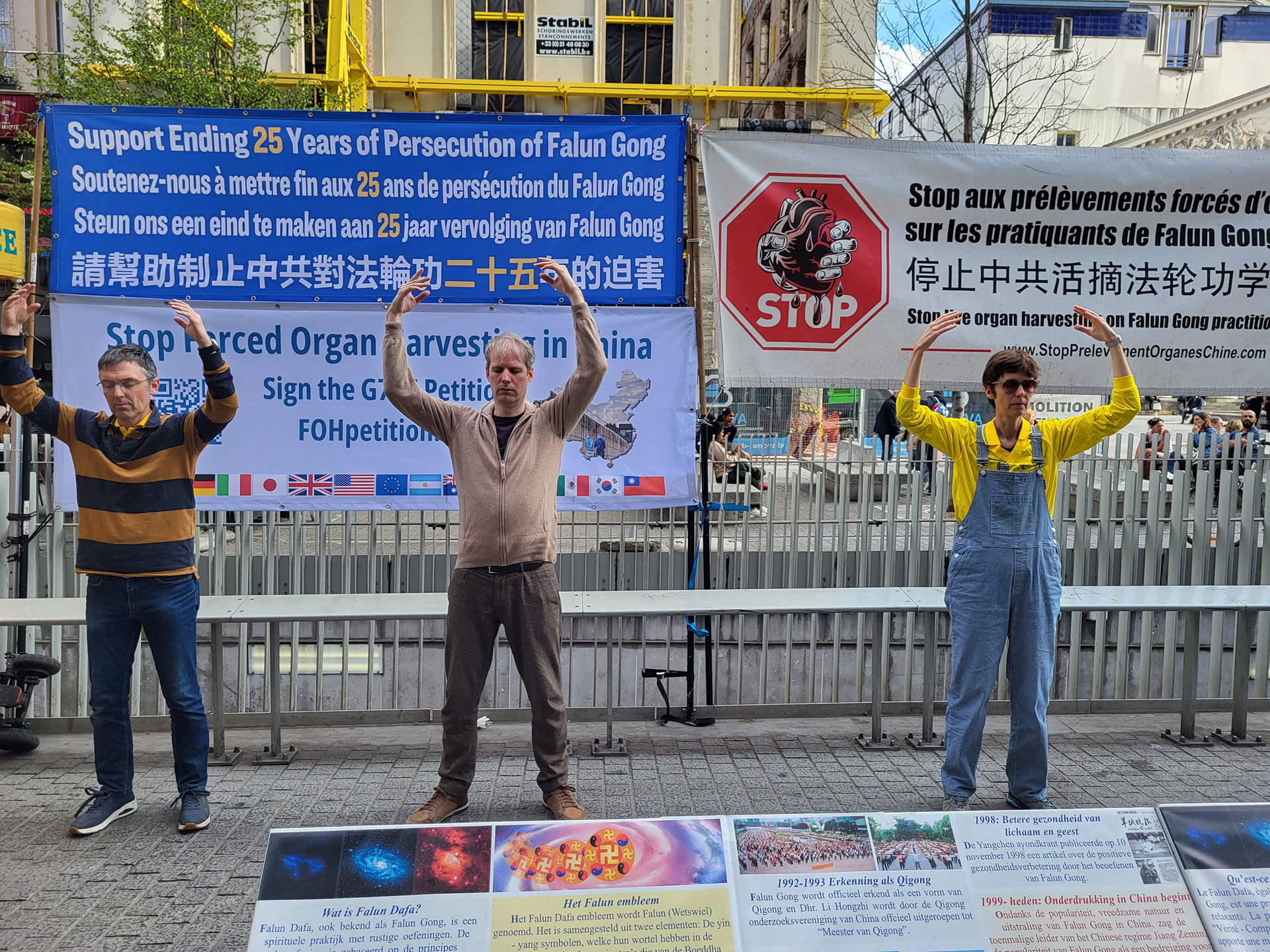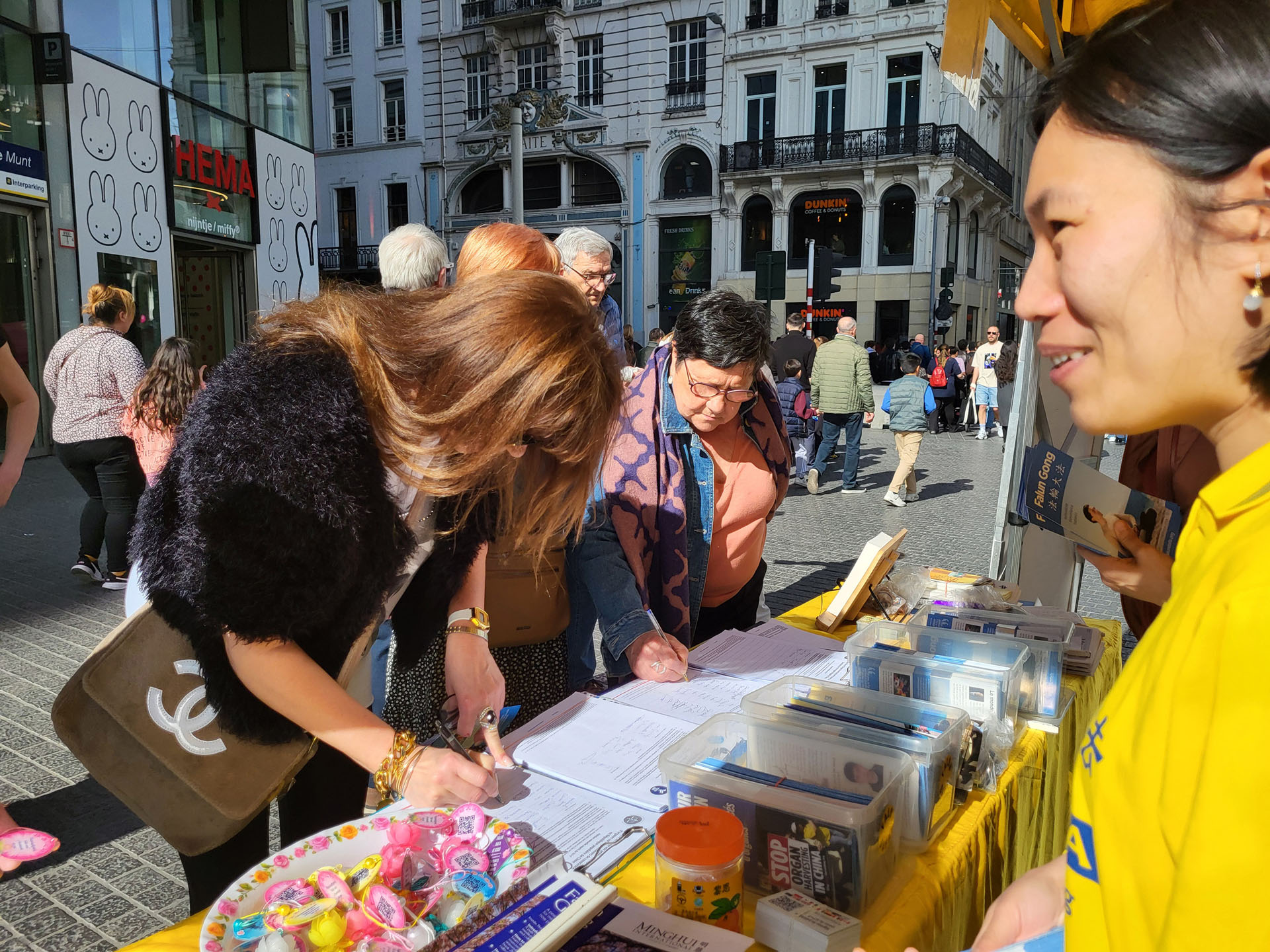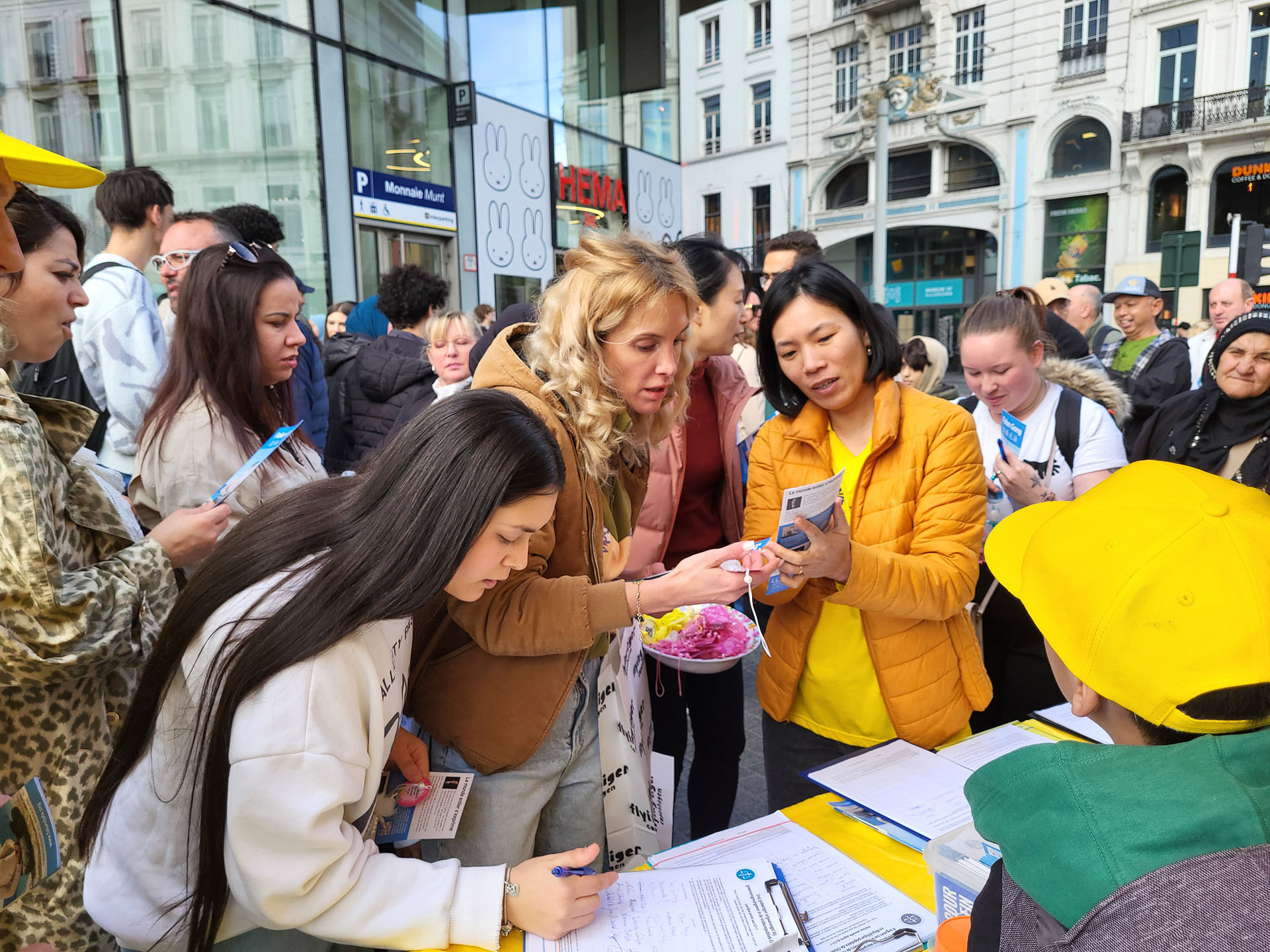 【明慧网二零二五年三月二十六日】(明慧记者唐容布鲁塞尔报道)二零二五年三月二十二日,法轮功学员在比利时布鲁塞尔市中心的繁华街区,举办一场旨在揭露中共迫害的街头活动,吸引了众多行人驻足观看。活动通过展板、传单、功法演示,以及向公众介绍法轮功的真、善、忍核心理念,并揭露学员在中国遭受的残酷迫害。许多了解真相的民众纷纷在请愿书上签名,支持制止这场持续了二十多年的迫害。 图1~6:二零二五年三月二十二日,法轮功学员在比利时布鲁塞尔市中心的繁华街区举办揭露中共迫害活动,吸引了众多行人驻足关注。 |