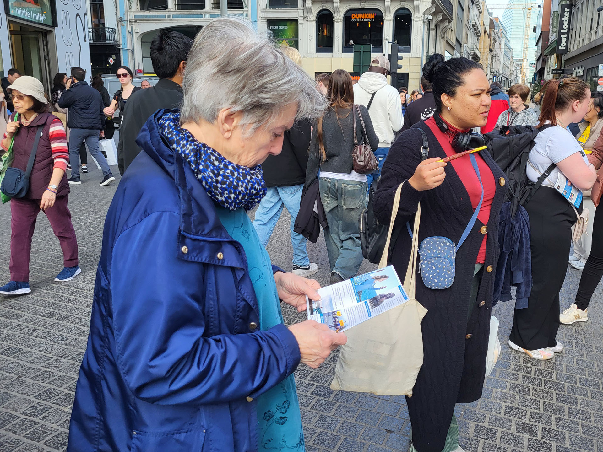 来自英国的欧文(Owen)在听完法轮功学员的讲解后,毫不犹豫地签下自己的名字。他坦言,之前从未听说过法轮功,更不知道这场迫害已经持续了二十多年。“这样的活动非常重要,因为许多人根本不知道发生了什么。” 他对中共活摘器官的罪行感到震惊和愤怒:“仅仅因为信仰而被关押、酷刑折磨,这是完全无法接受的。活摘器官更是骇人听闻。”他希望通过签名,制止这场迫害。 一位法轮功学员表示,中共的迫害已经持续了二十多年,法轮功学员始终坚持和平理性地讲述真相,希望唤醒更多人们的良知。他们呼吁国际社会采取行动,共同制止迫害,让信仰自由真正得到保障。 活动结束时,许多路人仍在与学员交谈,索取更多信息,并表达对法轮功的支持。越来越多的人开始了解这场迫害的真相,并愿意为正义和人权贡献自己的一份力量。