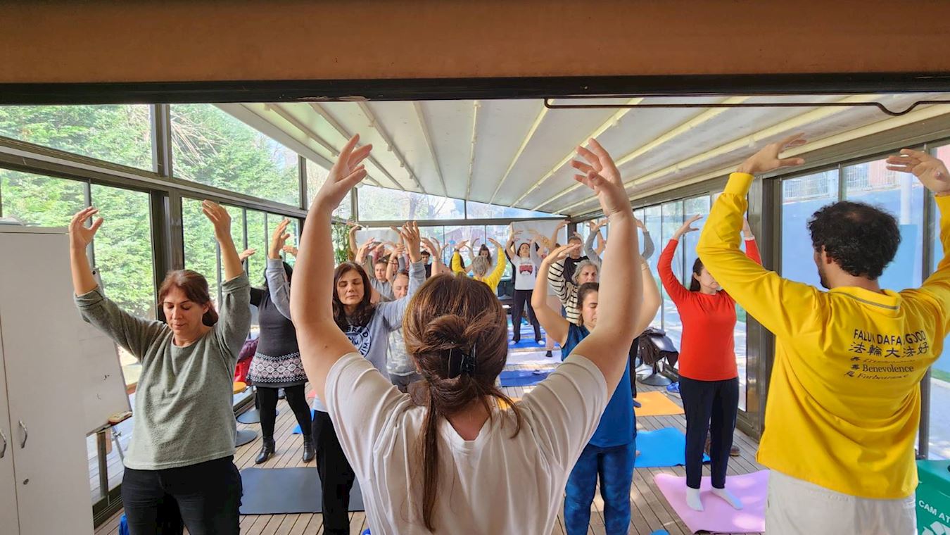 | 【明慧网二零二五年三月二十八日】二零二五年三月二十二日星期六,土耳其伊斯坦布尔的法轮功学员在卡德柯伊市(Kadıköy)生态生活中心举办了一场功法介绍及讲真相活动,让民众了解到大法修炼的美好以及法轮功在中国所遭受的残酷迫害。 当天前来参加活动的人中,有的是第一次听说法轮功,有的则对法轮功已有所了解。有人表示,每次参加法轮功的活动都有不同的感受,学炼功法时能体会到巨大的能量。  图1~2:二零二五年三月二十二日星期六,土耳其伊斯坦布尔的法轮功学员在卡德柯伊市(Kadıköy)生态生活中心举办了一场功法介绍及讲真相活动,图为法轮功学员和民众一起炼功。 |