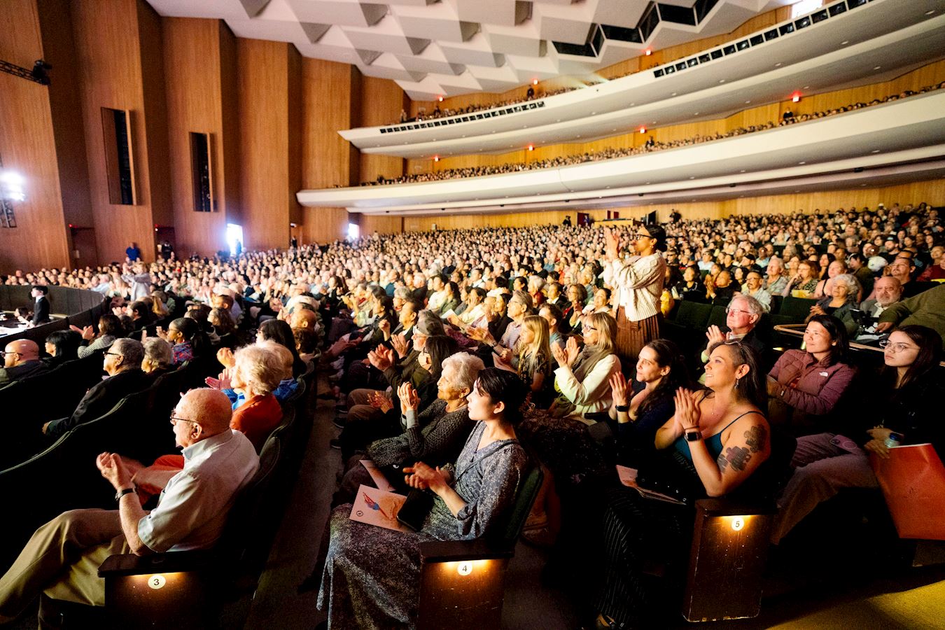 .纪.元;)'> 图2:二零二五年三月十九日至三月二十三日,神韵国际艺术团在美国盐湖城乔治‧多洛雷斯多尔‧埃克尔斯剧院(George S.and Dolores DoréEccles Theater)共演出五场。图为三月二十三日下午第五场演出赢得满场观众的热爱。(大.纪.元;) |