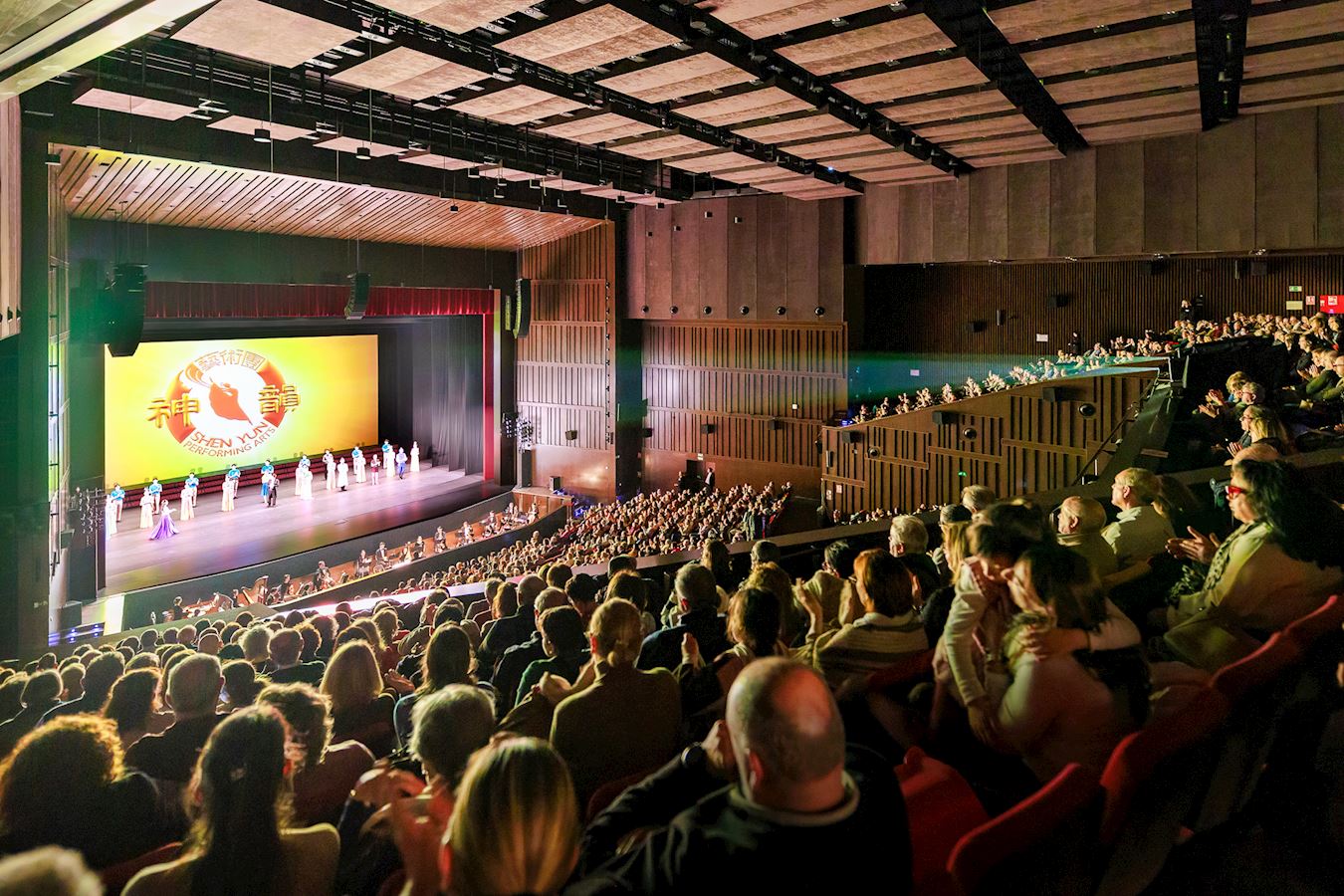 .纪.元;)'> 图4:二零二五年三月二十三日晚上,神韵巡回艺术团在法国蒙彼利埃科珲会议中心(Le Corum)开始今年的第二轮的演出。图为当晚首场演出爆满。(大.纪.元;) |