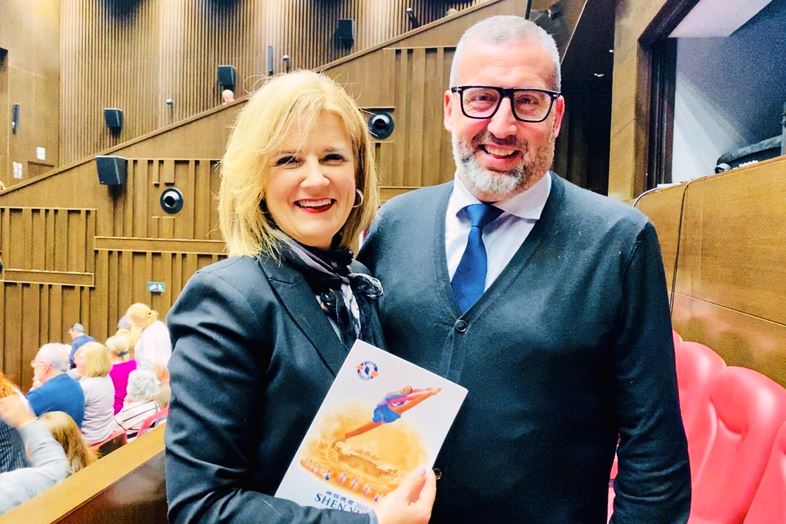 “一切都很棒。色彩令人惊艳,我喜欢色彩的搭配,服装上的所有细节都很出色,真是让人叹为观止。”艺术系教授安德莱娅・温克巴赫(Andrea Wenckebach)也特别注意舞台上的色彩。 从神韵演出中她获得了很多灵感:“演出中我感受到很多艺术创作的启发,浮现出很多灵感都可以带回去,融入到作品中。比如,神韵独特绚丽的色彩让我想起了珐琅,我可以用彩色珐琅来创作,反映我今天看到的色彩。” 西班牙大区议员夫妇:神韵展现拥有五千年历史的美好中国 .纪.元;)'> 图11:二零二五年三月十八日晚,西班牙安达卢西亚大区议员拉法・鲁伊斯・古兹曼(Rafael Joaquín Ruiz Guzmán)与太太、塞维利亚大学物理治疗系教授拉奎尔·奇隆(Raquel Chillón)在塞维利亚市观赏了神韵演出。(大.纪.元;) |