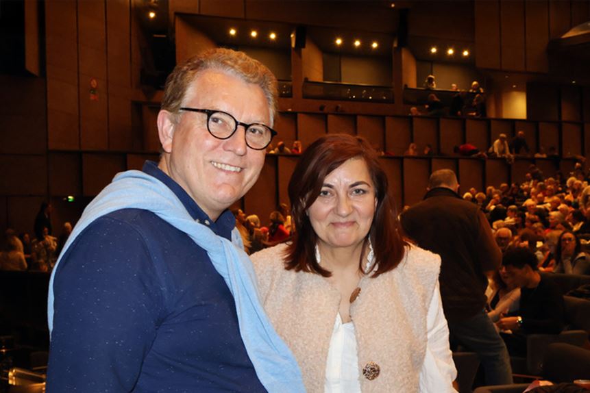 当地议会党团发言人拉法・鲁伊斯・古兹曼(Rafael Joaquín Ruiz Guzmán)议员赞叹:“我感受到了喜悦——真正的中国所展现出来的喜悦。真正的中国拥有的那种自然和正常状态。中国古典舞蹈中即使是打斗的场面,也能让我们感到放松。还有色彩,我爱神韵的色彩,我爱真正中国的色彩。” “我们今天看到的是一个我们不曾了解过的真正中国,一个拥有五千年历史的美好中国。”他特别强调:“没有任何独裁政权能够摧毁这些传统,没有任何独裁政权能够结束神韵在做的事,没有任何独裁政权能够摧毁这些舞台呈现、这些舞蹈、神韵优秀的主持人们所提到的传统。总之,我们对神韵出乎意料的喜爱!” 拉奎尔·奇隆(Raquel Chillón)教授感受到:“神韵是一场充满美的盛宴,美不胜收,神韵的一切都如此美丽。神韵的一切(内涵)都充满了文化、艺术和历史,她是一场融合了众多故事与传说的精彩演出。让人从战争、家庭、价值观、爱等方面深受感动,(观看神韵)是一场非常美好的体验。” 法国银行商业总监:神韵展现珍贵的信念 .纪.元;)'> 图12:二零二五年三月二十三日晚,法国里昂一家银行的商业总监菲利普·梅泰里(Philippe Metairie)和太太西尔维(Sylvie)在蒙彼利埃市观赏了神韵演出。(大.纪.元;) |