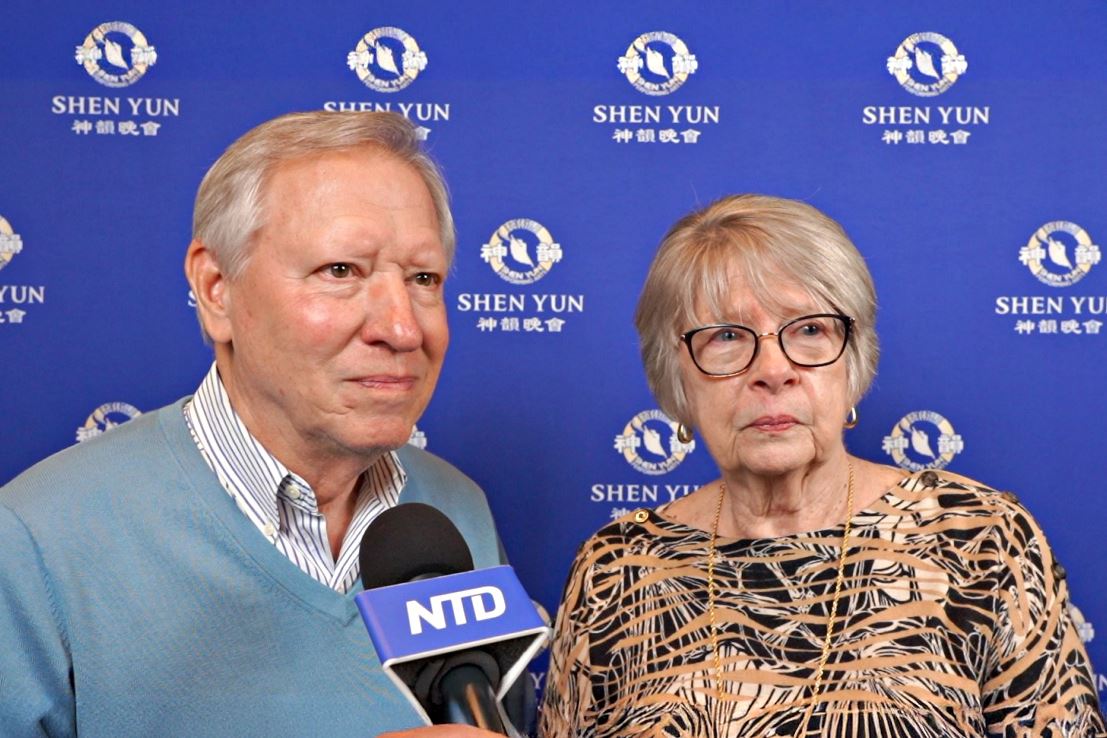 “极为优秀!无论是从艺术价值、专业水平,还是从启迪人心的角度上来看,都非常出色。”钢琴教授英格丽德・克拉菲尔德(Ingrid Clarfield)观赏了神韵后赞叹不已,“演出触人心弦,让人能感受到音乐,体会音乐的同时能观赏到音乐,能看到舞蹈演员们将音乐的美妙尽数呈现。” 克拉菲尔德在四十多个州、近二百座城市举办过演奏会、大师班等,还撰写了二十六本书,在四十余年的教学生涯中也多次获得音乐教育届教师奖及终身成就奖。 作为音乐家,她谈到:“我更关注聆听原创的管弦乐。这些作品真是美妙绝伦。所有的音乐家都技艺非凡,(神韵交响乐团)每个部分的水平都是一流的。” “我一直希望能观看神韵。”终于得偿所愿后,克拉菲尔德尤说,“我心中满是喜悦。”她也打算向学生推荐神韵,她特别赞赏神韵演出中音乐与舞蹈,钢琴伴奏与二胡独奏的完美契合,以及其对音乐的共同诠释:“这也是我对音乐的理解。不是停留在呈现技术,而是饱含艺术性的技艺,这是最重要的。” 美国前舞蹈编导:神韵的美妙蕴含着极大的奉献和牺牲 !唐!人:电视台)'> 图8:二零二五年三月二十三日下午,舞蹈教师、前舞蹈编导和舞剧院总监布兰迪丝・里巴(Brandis Riba,右)与先生在美国新布朗斯维克观赏了神韵演出。(新!唐!人:电视台) |