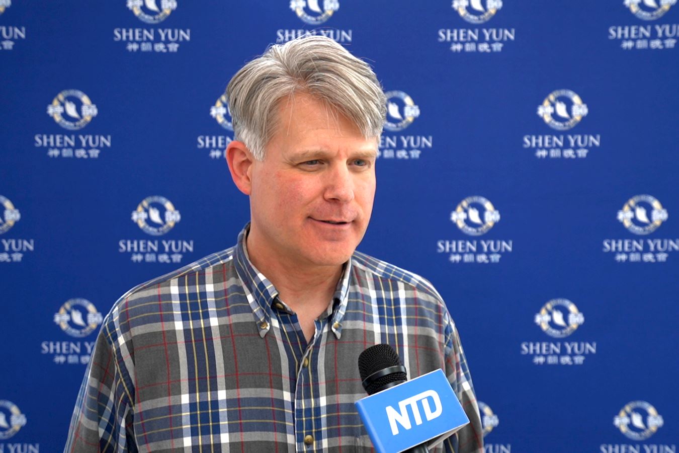里克・克莱恩(Ric Kleine)退休前曾任一家世界500强公司的高管,他表示:“演出与众不同,令我非常佩服。”“演出清楚展现信仰、关怀、为他人考虑、言论自由。让我们明白获取不是我们在世的主要使命。真正重要的是为他人做的事,以及对创世主的信仰。” 他领悟到:“人们过于重视物质的积累,关心的是自己,而不是他人。我觉得演出传递的讯息很清晰:我们是一体,需彼此照顾和支持。重点不在于我们拥有多少,而在于付出多少爱。” 公司老板:神韵演出引导观众的思想和情感走向神 !唐!人:电视台)'> 图14:二零二五年三月二十三日下午,盲人用品公司老板克里斯・桑普森(Chris Sampson)在盐湖城观赏了神韵演出。(新!唐!人:电视台) |