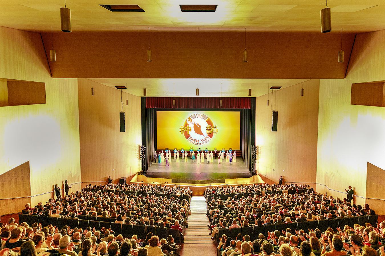 皮耶罗·托齐(Piero Tozzi)认为,“演出的艺术造诣极高,”“在艺术上追求精湛”,又体现了“美德的卓越”。 他对二胡独奏印象特别深刻,“(二胡演奏家)真的很有才华,她展现了极高的演奏技巧。不仅技术纯熟,她的演奏还能传达出丰富的情感,富有变化与层次,几乎就象一幅中国山水画——音符在空间中流转,象画作在屏幕上展开一样。”“它引领你登高望远,又缓缓带你深入幽谷、横越江河。” .纪.元;)'> 图7:二零二五年二月二十六日晚,美国神韵世界艺术团在西班牙阿维拉利恩佐诺特会展中心(Lienzo Norte) 上演了当地首场演出,一票难求。(大.纪.元;) |