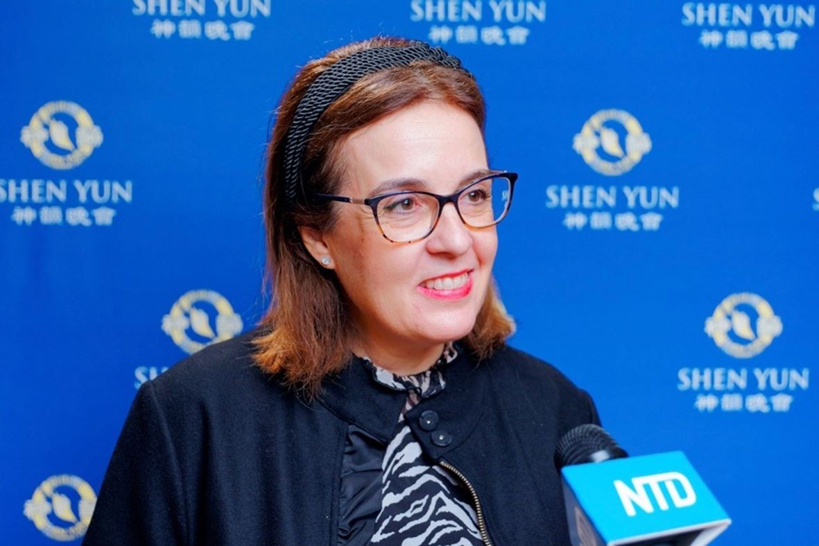 文章描述,“演出颂扬五千年的文明,让观众领略天宫绝美景致和历代王朝的深厚智慧。” 文中说,神韵在全球巡回演出,如今在本市也留下浓墨重彩的一笔,“她结合令人惊艳的舞蹈、华丽的服装、现场管弦乐团和动态天幕,这场演出充满勇气、希望和正义战胜邪恶的主题。” 文章清楚写明,“神韵被认为是世界上唯一一家代表中国文化的艺术团体,而中国文化因为数十年的共产主义统治几乎被摧毁殆尽。” 文中还提到,“古代中国文化受到神的启发,神韵演出反映了这一丰富的精神遗产。该艺术团每年都会推出一系列原创音乐和舞蹈,涵盖中国古典舞、传统民族和民间舞蹈,以及感人至深的戏剧故事。” 最后,文章在结尾处写道,“在冬末,神韵以温暖的怀抱拥抱这一古老的文化遗产,以绝佳的方式迎接新季节的到来。这是一种极具亲和力、教育意义和娱乐性的体验!” 西班牙大区议员赞神韵:为自由而奋斗 带来重要启示 !唐!人:电视台)'> 图9:二零二五年三月一日晚,西班牙穆尔西亚大区议员卢斯・玛丽娜・洛伦索・赫亚(Luz Marina Lorenzo Gea)观赏了神韵演出。(新!唐!人:电视台) |