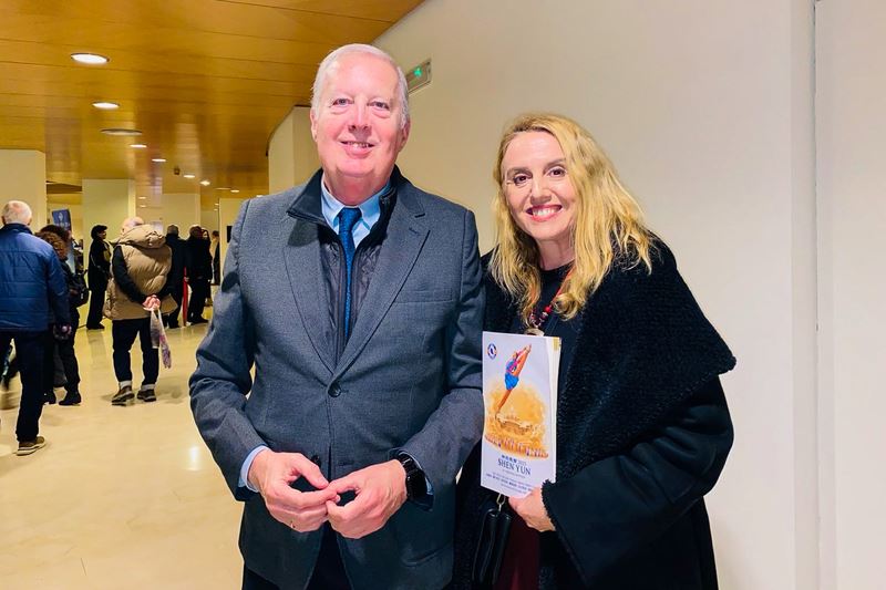 穆尔西亚大区议员卢斯・玛丽娜・洛伦索・赫亚(Luz Marina Lorenzo Gea)盛赞:“神韵太精彩了,我爱神韵,真是一场奇妙的演出!我非常、非常、非常的激动。”“我们非常高兴神韵能够来到穆尔西亚,三场演出场场票房告罄。真是一个巨大的成功,恭喜神韵。” 她认为:“在文化与艺术层面上,神韵带来了一个非常重要的反思:自由是如何在(中共治下的)中国被剥夺,(神韵演出)试图找回自由,中国拥有深厚的传统,神韵正为这个美丽的国家(中国)而奋斗,但遗憾的是,神韵甚至无法在中国上演。” “对我们所有人来说,神韵都具有非常重要的影响,对西班牙人而言也是如此,有时我们可能会认为像中国这样的国家在地理上离我们非常遥远,但我们确实拥有共同的情感。我们身边也有许多华人邻居、华人同胞。透过神韵所传递的传统,透过神韵为自由而奋斗的精神,我们也得以从艺术与文化中观察并学习,在西班牙体会到神韵所表达的价值观。” 西班牙医学专家、大区议员:神韵传递积极能量 丰富了每个人 .纪.元;)'> 图10:二零二五年三月二日晚,医学专家、西班牙穆尔西亚大区议员安东尼奥·马丁内斯·帕斯托(Antonio Martínez Pastor)先生与太太一起观赏了神韵演出。(大.纪.元;) |