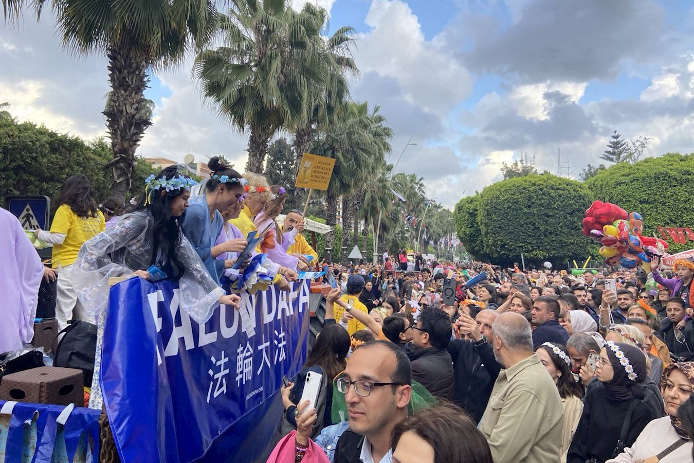 | 【明慧网二零二五年四月十六日】二零二五年四月五日至六日,部分土耳其法轮功学员参加了在第四大城市阿达纳(Adana)举办的第十三届橙花节(Orange Blossom Festival),这是阿达纳的传统庆祝节日,活动吸引了超过两百万名游客。 活动期间,法轮功学员参加了舞台功法演示、游行,并传递真相资料,不仅展示了修炼人的祥和,也让民众看到法轮功学员面对中共迫害的坚韧。许多人被法轮功所吸引,纷纷前来了解真相,并亲自体验炼功。  图1~3:二零二五年四月五日至六日,土耳其法轮功学员参加了第十三届橙花节,活动吸引了超过两百万名游客,游客们争相领取法轮大法真相资料。 |