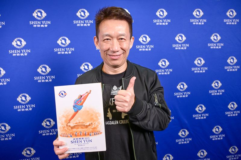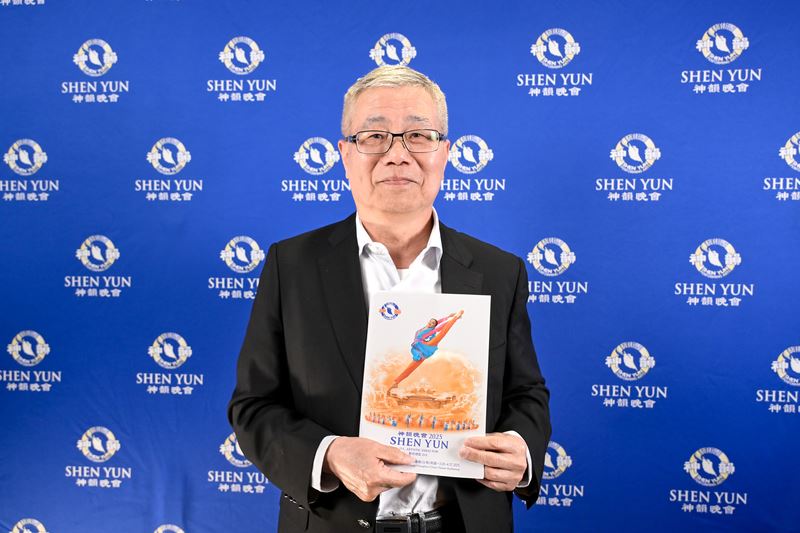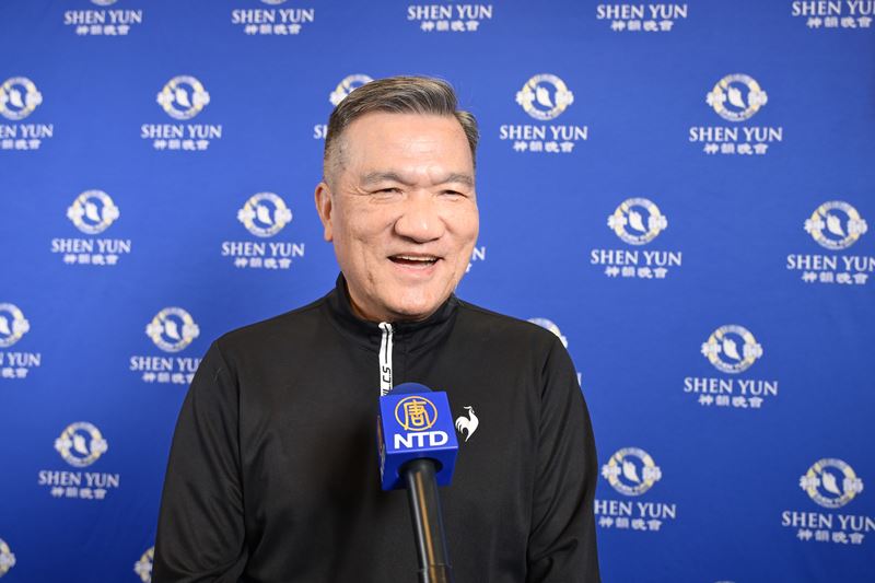 “这是一场灵性的飨宴。”副教授刘玉皙表示,“神韵重现共产党以前的中国,让我感受到中华文化深厚的底蕴。”她指出,台湾社会因抵抗共产党,有时也对中华文化产生误解,但神韵让这种紧张关系消弭,使人能平静地欣赏中华文化的丰富内涵。她认为,“来看神韵后,就能体会没有共产党因素的中华文化应该是什么样子。” 此外,在观赏神韵时,她也深刻感受到神性与“天人合一”的灵性感受。她说:“人性有善与恶,我们需要神性去指引。”“神性是共同的,神性是跨文化存在的。”她认为,这场演出提醒自己要追求更高的生命境界。她形容,神韵的舞台从配色到舞蹈的肢体语言都展现纯净之美,“那种纯净是接近天人或是仙境的感觉。”“可以感受到比较高层次的召唤,我觉得可能这就是所谓的天人合一的感觉。” 亚洲华商会执行长:神韵演员背后有神的力量 .纪.元;)'> 图8:二零二五年三月二十日晚,泰国华商经贸协会副理事长、亚洲华商经贸联合总会执行长白佩琦在基隆观赏了神韵演出。(大.纪.元;) |