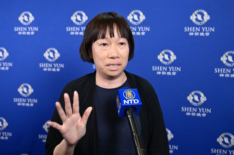 本身是佛教徒的前广达电脑执行长王震纬表示,“各种宗教都好,都是与人为善,人性跟神性,到最后极致就是神性,这些都是(神韵)里面谈的真、善、忍。”他表示在现场能感受到这种唤醒神性的能量,“好象有一个清流,你会觉得整个全身都经过这样的一个仙风、神风也好,这样一种洗涤过的感觉。” 此外,王震纬认为神韵演出内涵中所呈现出的善,唤醒了人与神之间的连接,“可以对比中共的无神论,”他说,“现在台湾在讲抗‘中’保台,我想应该把它改成抗‘共’保台,因为其实中国人有很多善良的人。但‘中国’人跟‘中共’是分开的。” 王震纬进一步解释,这种不信神,无神论的价值观最后显示在共产党各方面,“它已经是倒行逆施到无以复加的程度,它现在整个是战狼,透过渗透,狙击着全世界。”“共产党就是欺骗、恐吓、暴力,这三个手段。” “演出把中国在古典(传统)、善良美好的那一面演绎出来,刚好跟现在的极权专制的中共现况做一个对比”,王震纬说,“一个是善,一个是恶,让拯救、善的力量被激发起来,更多人都这样,之后恶的部分就会改变。”“这个世界就会变好了,因为善的越多,恶的就会越少!” 广达电脑是台湾科技业大厂,美国《财富》杂志世界500家公司之一,历年亦同时在台湾千大制造业调查中名列前茅。 大学副教授:天人合一的灵性飨宴 .纪.元;)'> 图7:二零二五年三月二十九日,台湾世新大学传播管理学系副教授刘玉皙在台北观赏了神韵演出。(大.纪.元;) |
