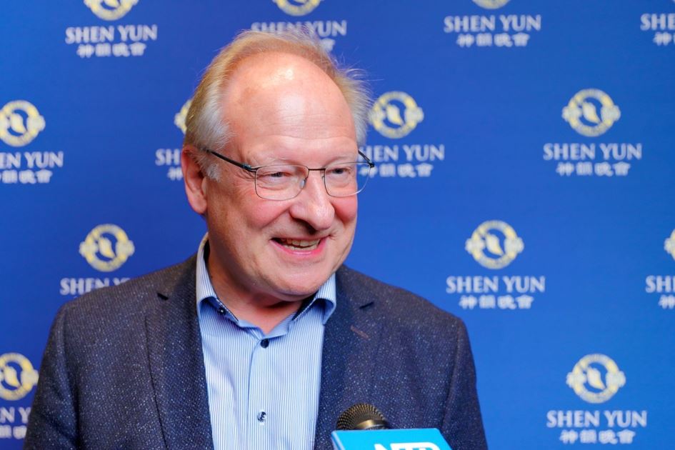 哈里斯(Roger Harris)感佩道:“我每年都看神韵,我很喜欢她,而且每年都是全新的节目。神韵带给我许多启迪,真的非常、非常美好。我每次观赏后走出剧场时,都因深受感动而落泪。演出展示了精湛的技艺,极富教育意义,不仅让人学到历史,还能领悟深邃的哲理。舞蹈演员的高超技艺与优雅气质,对我而言,真的是意义非凡。” 哈里斯说,神韵激励他为别人多做善事。“神韵讲述了很多故事,内涵启迪人心,让人明白做个好人、善待他人的重要性,也提醒我们应该少一些自私,不要太在意世间俗事,而是更多地追求精神层面的升华与启迪。” 德国声乐教授赞神韵:精工细作 完美无瑕 !唐!人:电视台)'> 图10:二零二五年三月二十七日,德国波茨坦大学声乐教授、声乐科学学会主席麦可·布特纳(Michael Büttner)在柏林观赏了神韵演出。(新!唐!人:电视台) |
