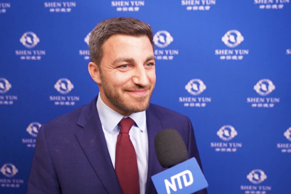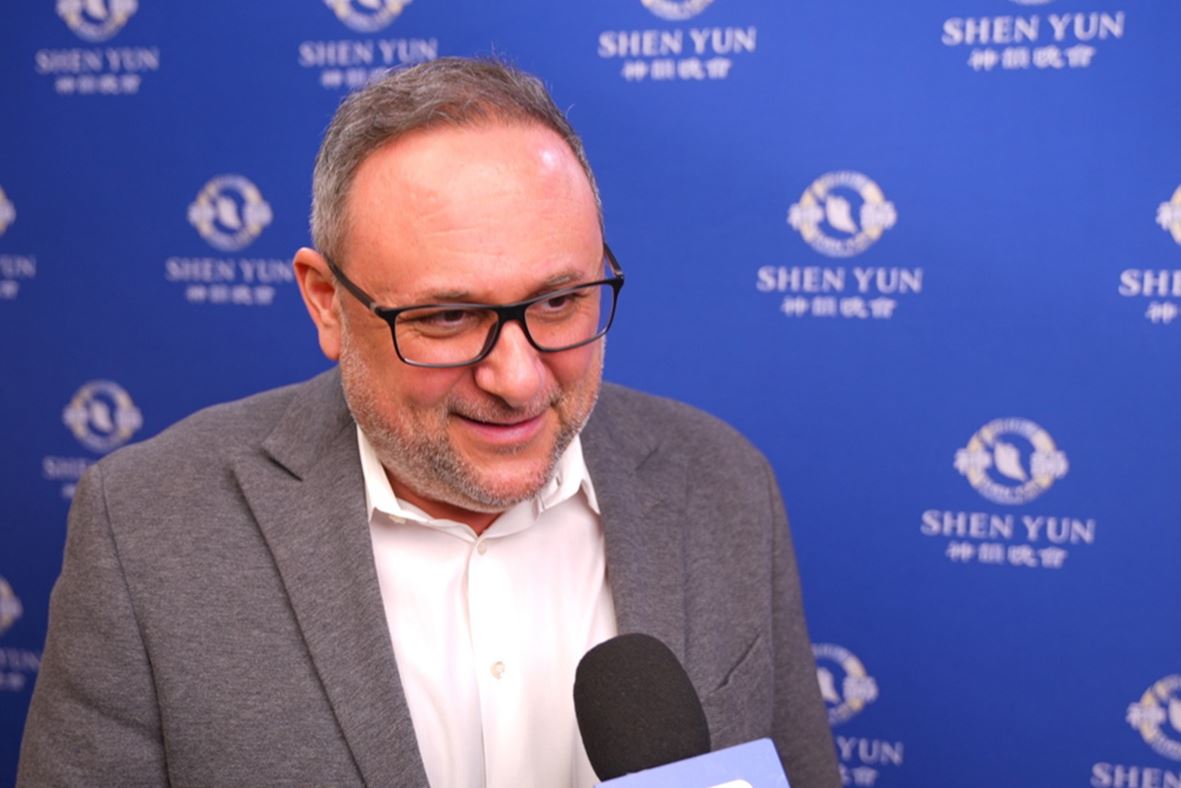 第二次观赏神韵的驻多伦多台北经文处处长梁毅鹏表示:“我想今天晚上的演出她带来许多正面而且重要的讯息,我想她会让看到的观众会理解到,不论在加拿大或者是在台湾或者是世界各地,人们都应该要珍惜,并且要继续要坚持一种自由的生活方式,我们相信武力、胁迫、欺诈、邪恶——它不会赢得其他人其他国家的尊敬,唯有相互的尊重、包容、欣赏,并且尊重每一个人作为人的尊严,这个才是我们追求的文化价值,这个才是文明的真谛。” 神韵让人们看到共产党之前的中国,梁毅鹏期待,未来能见证一个重拾传统美德的中国。他说:“中华传统文化这个是世界所有人类共同的资产,那么它遭到摧毁、破坏是人类共同的损失。所以我想此后不管在世界上什么的地方,大家都应该要珍惜,同时要努力去恢复中华固有的传统美德,(共产主义)这种邪恶的思想,它只能短暂的存在,不会永远持续,我们大家要有这个信心。” 他还认为:“我想观众不但能够体会到共产之前的中国,同时观众更会期待共产之后的中国。我想这个是我们大家共同的期望,而且我们大家都相信这个不会太久,大家努力。” 神韵传递真善忍 美国镇议员感佩:让世界更美好 !唐!人:电视台)'> 图9:二零二五年三月二十九日晚,美国律师事务所合伙人、牡蛎湾镇议员刘易斯·因布罗托(Lewis Imbroto)欣赏了神韵纽约艺术团在林肯中心的演出。(新!唐!人:电视台) |