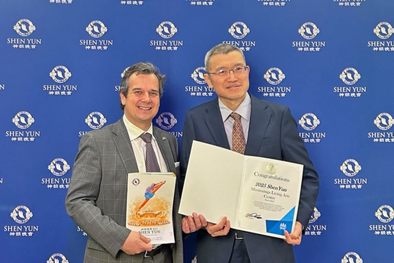 前德国国会议员安东‧弗里森(Dr. Anton Friesen)盛赞神韵绝对值得一看,“神韵所展现的传统非常重要,如今传统正逐渐消失,在欧洲和西方也是。(守护传统)对所有国家都很重要,尤其是对那些不幸由共产政权执政的国家。” 他还表示:“神韵让很多人了解了真正中国的传统文化,也揭露了共产主义是何等的邪恶,在全球都是这样,不止在中国,但尤其是在中国。神韵向人们揭露了这一点。”弗里森说。 加拿大密西沙加市议员褒奖神韵:必看的奇观 .纪.元;)'> 图4:二零二五年三月二十五日晚,加拿大安省密西沙加市议员史蒂芬‧丹斯科(Stephen Dasko)向神韵主办方颁发褒奖。(大.纪.元;) |