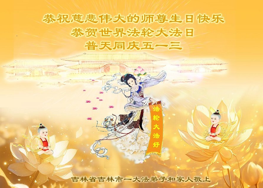 吉林省吉林市一大法弟子全家恭贺世界法轮大法日暨师尊华诞!