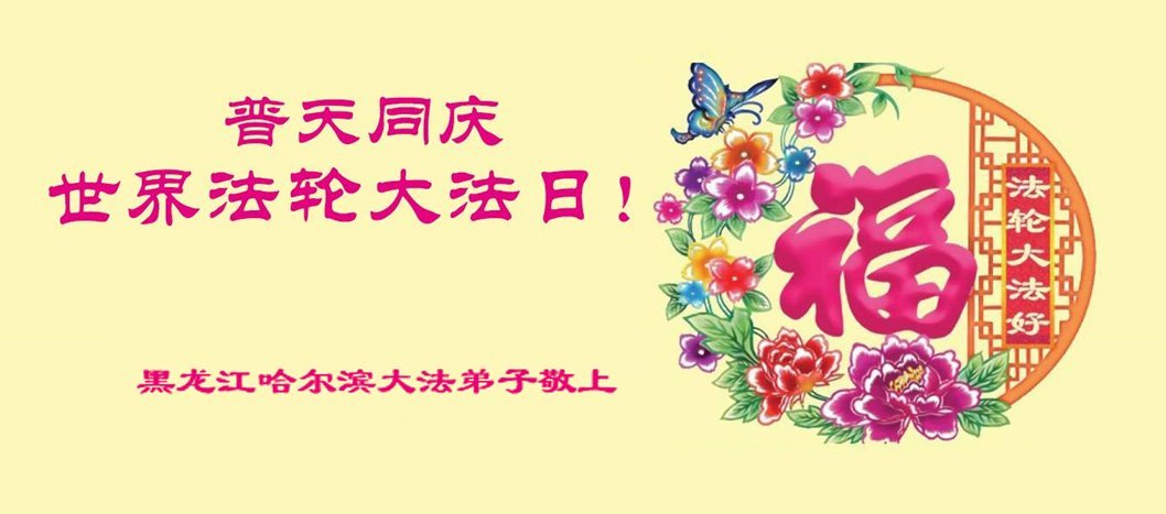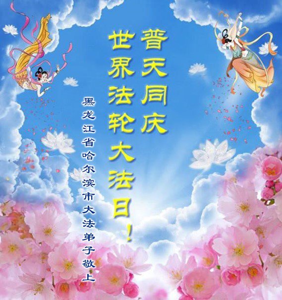 黑龙江省哈尔滨大法弟子恭祝慈悲伟大的师尊生日快乐!恭贺世界法轮大法日!