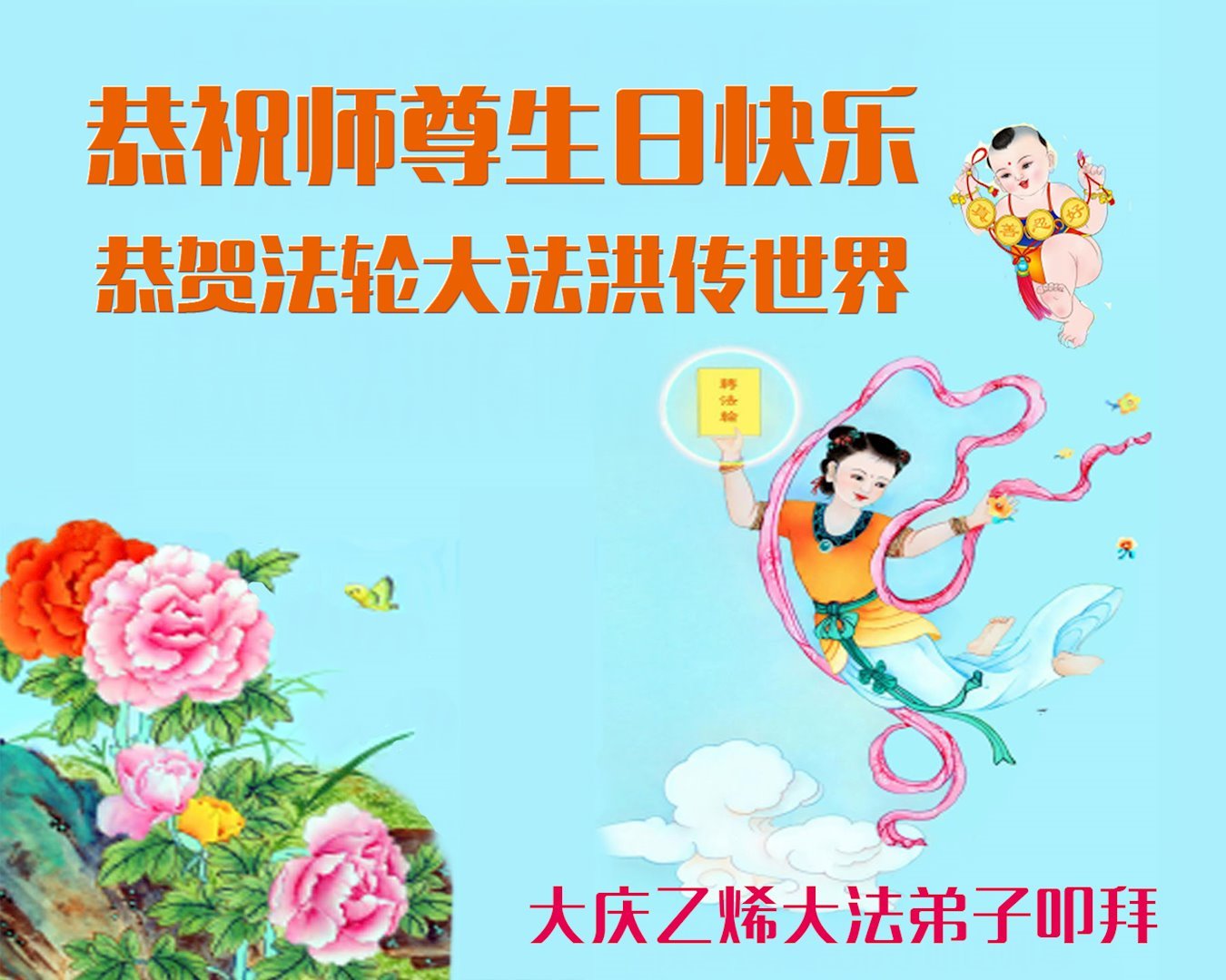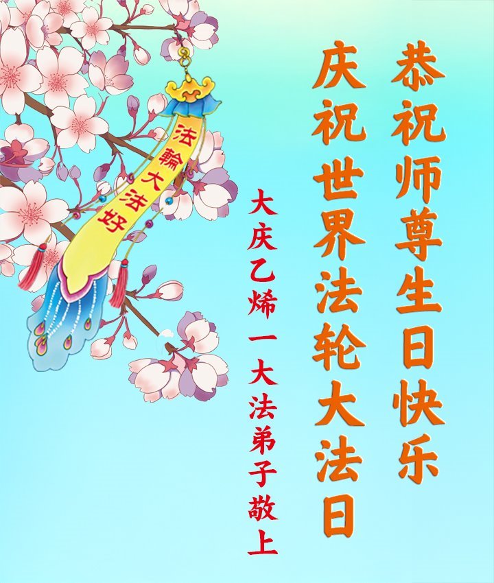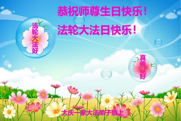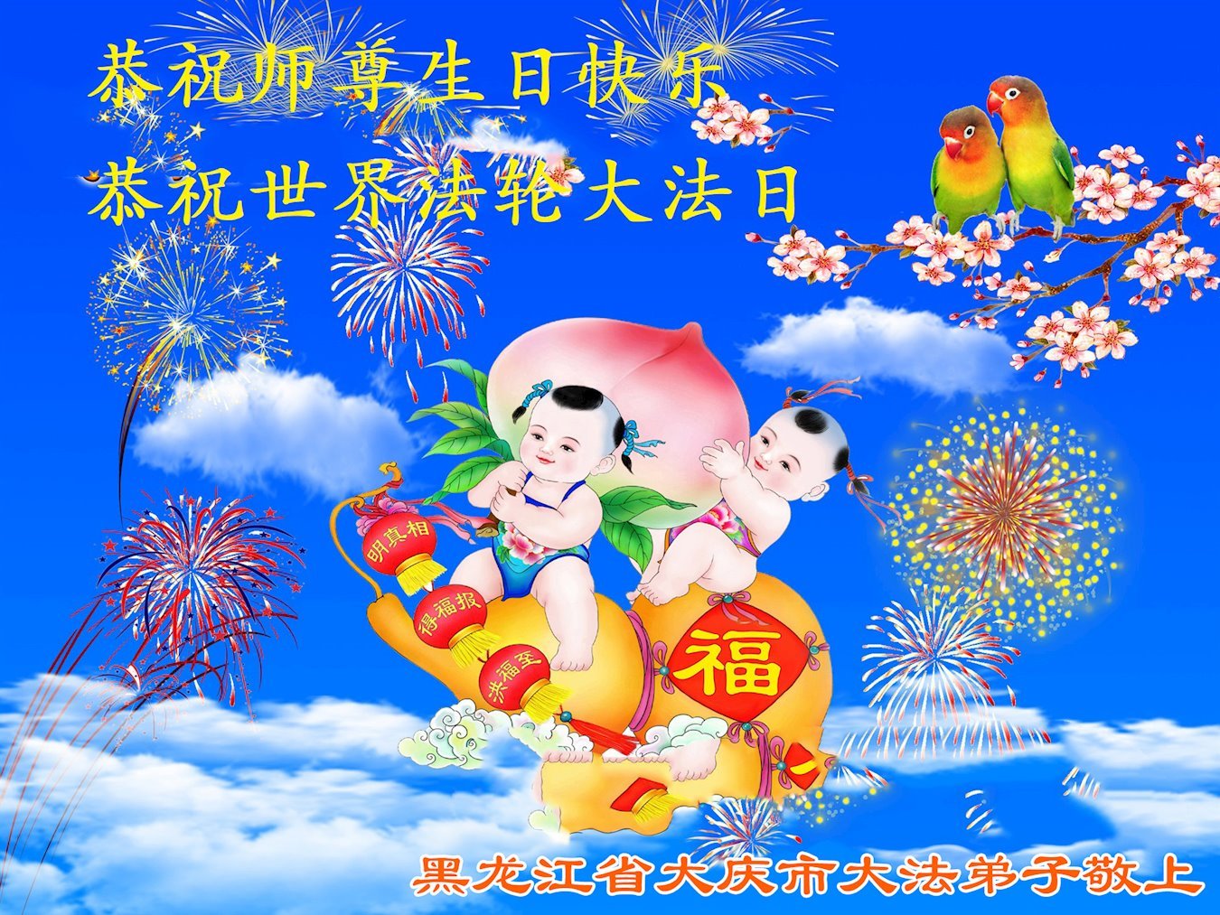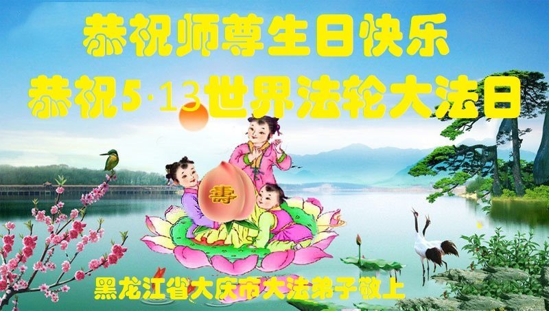 恭祝师尊生日快乐! 恭贺世界法轮大法日! 黑龙江省大庆市大法弟子敬上 黑龙江省大庆市大法弟子恭贺世界法轮大法日暨师尊生日快乐!