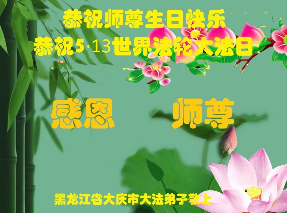恭祝师尊生日快乐!恭贺5·13世界法轮大法日! 感恩师尊慈悲苦度!感恩师尊救度之恩! 黑龙江省大庆市大法弟子敬上 |