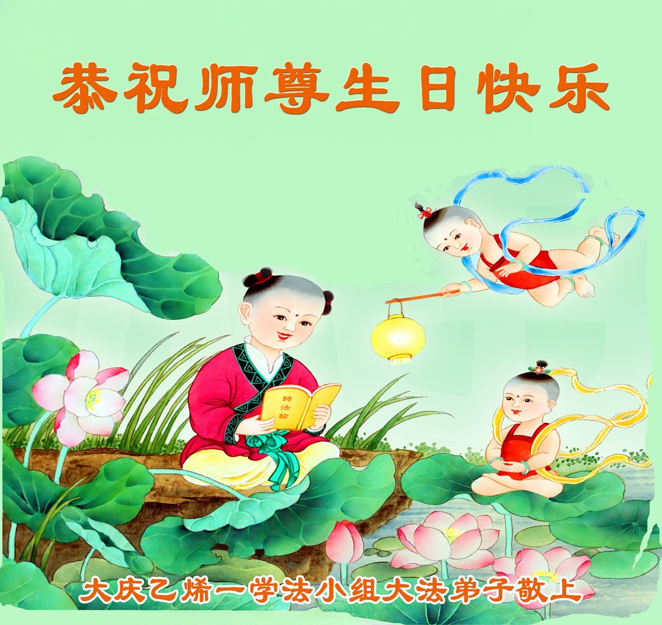 黑龙江省大庆市银浪地区大法弟子恭祝师父生日快乐!普天同庆世界法轮大法日!