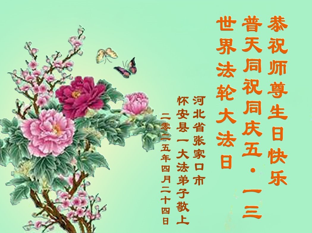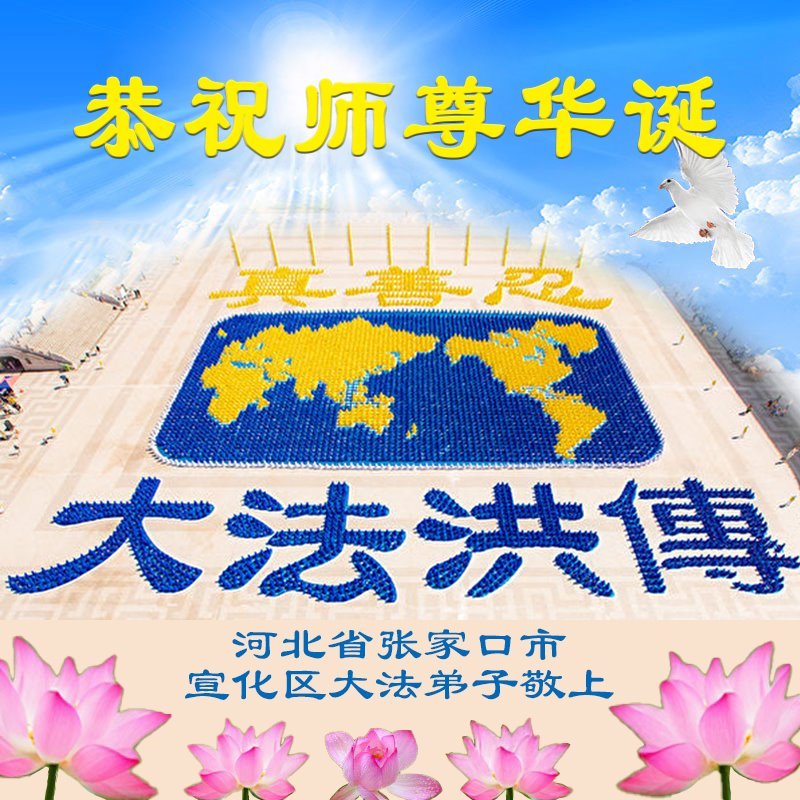 恭贺世界法轮大法日暨师尊华诞! 河北省张家口蔚县大法弟子敬上 河北省张家口市怀来县一大法弟子恭祝师尊华诞!同庆世界法轮大法日!