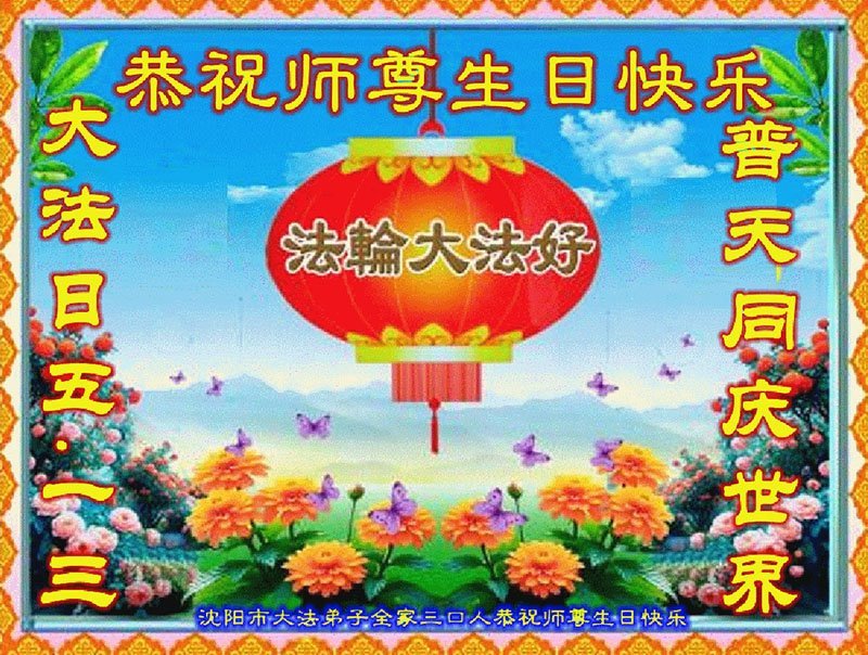 【明慧网二零二五年五月十日】 辽宁省沈阳大法弟子全家三口人恭祝师尊生日快乐!