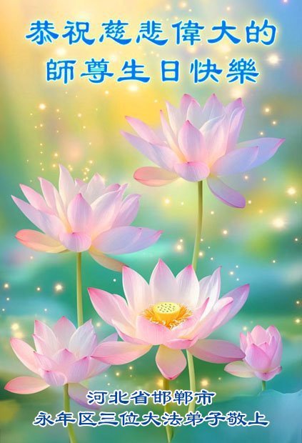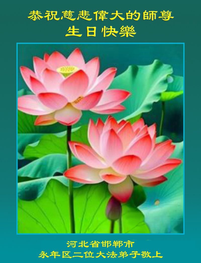 恭祝师尊华诞暨世界法轮大法日! 河北省邯郸市永年区二位大法弟子敬上 河北省邯郸市永年区三位大法弟子恭祝师尊华诞暨世界法轮大法日!