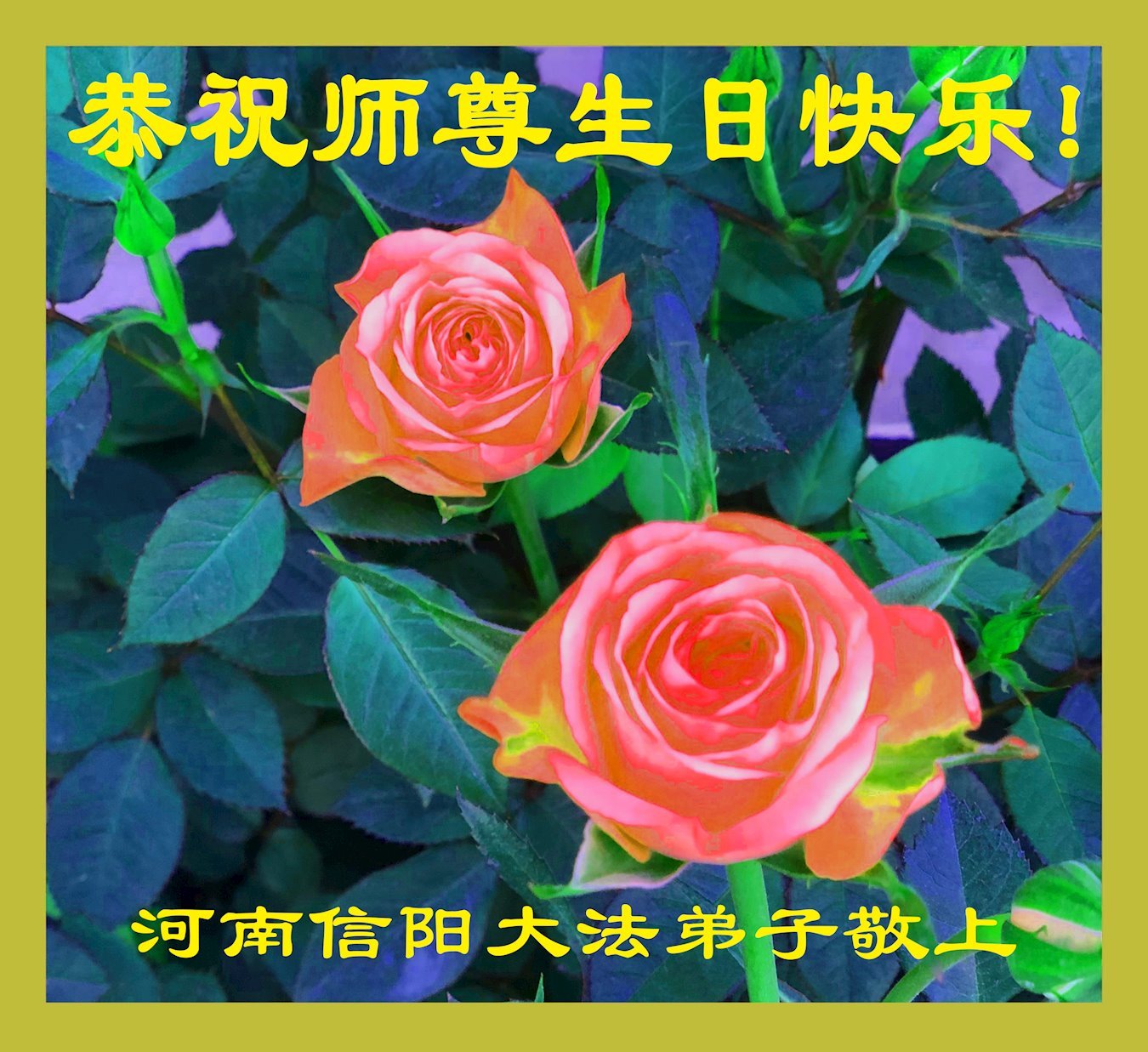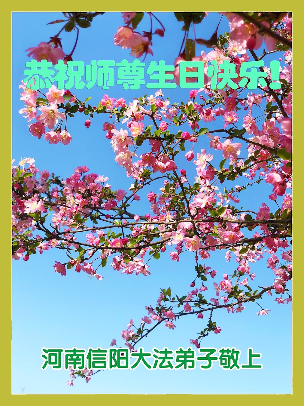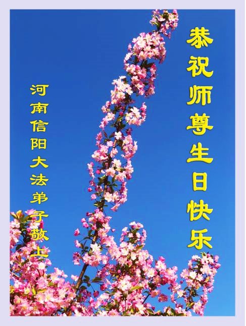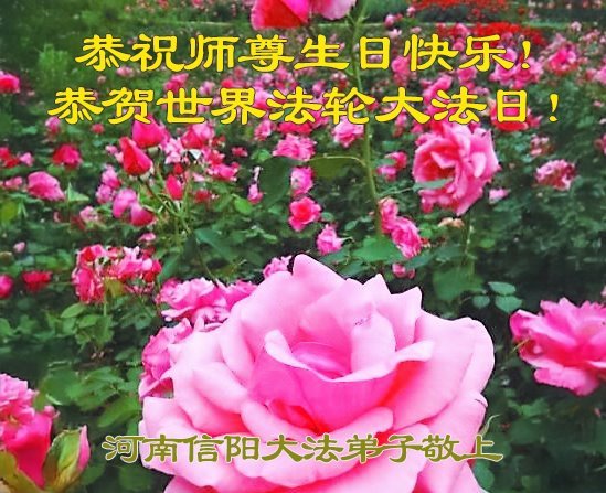 河南省信阳大法弟子恭贺世界法轮大法日暨师尊生日快乐!