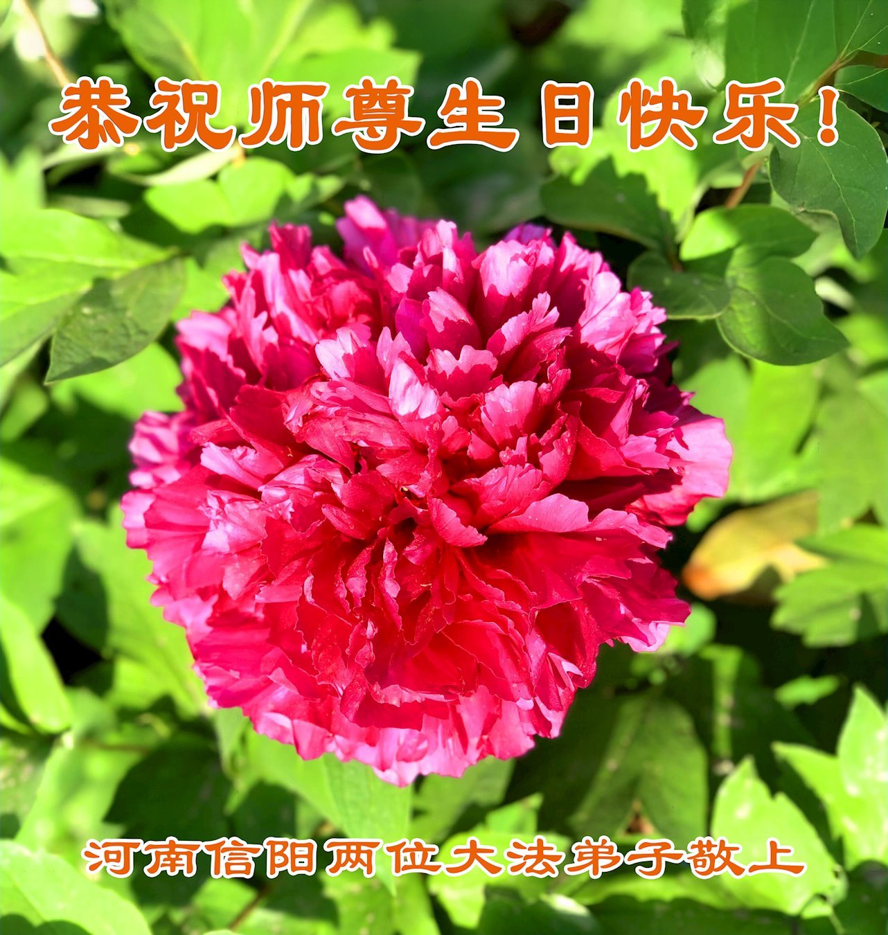 恭祝师父生日快乐! 感恩师父,感恩大法!师父您辛苦了,在今后不多的日子里,弟子要精進实修,多救人。 河南省信阳市两位大法弟子敬上 河南省信阳市大法弟子恭贺世界法轮大法日!恭祝师尊生日快乐!