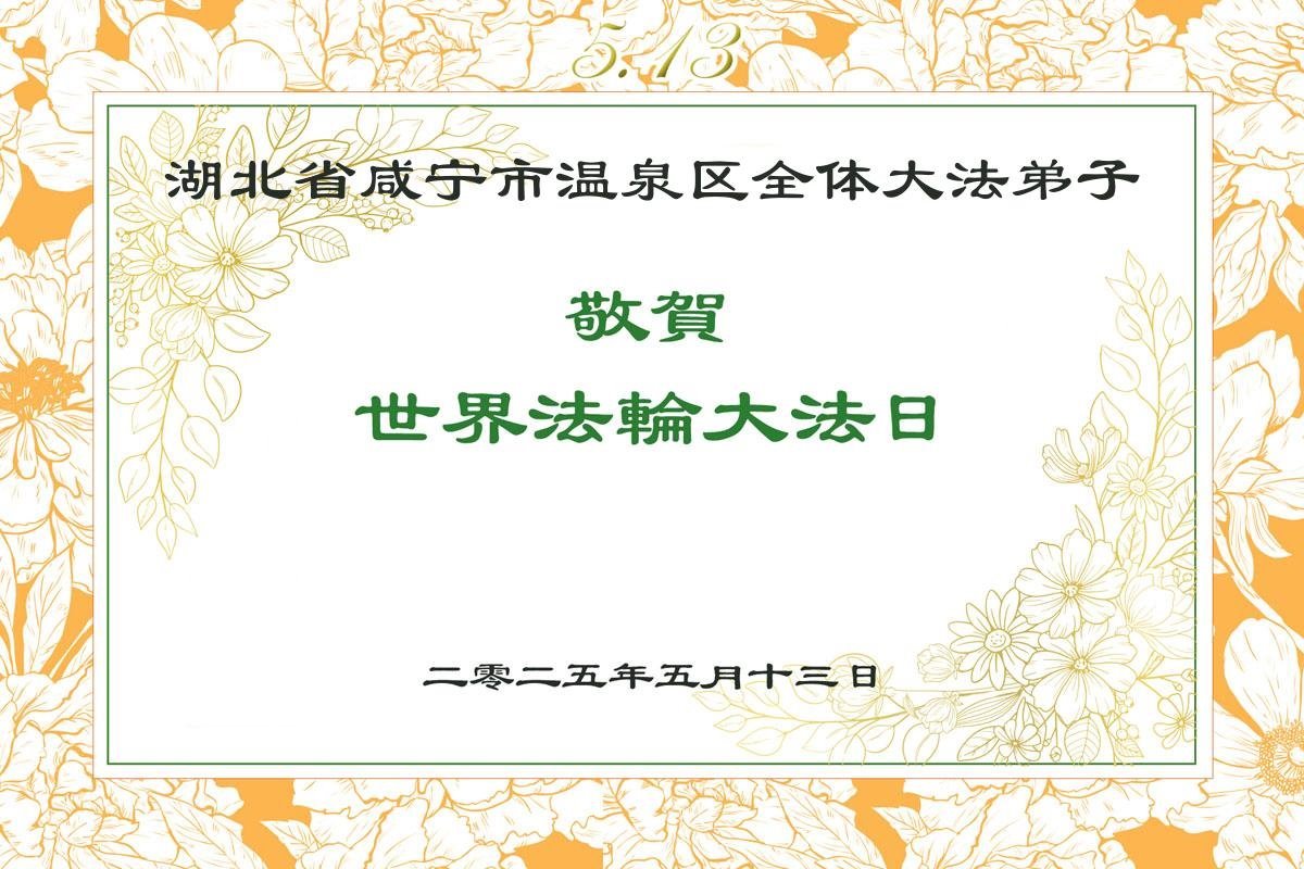 湖北省咸宁市温泉区全体大法弟子敬贺世界法轮大法日!