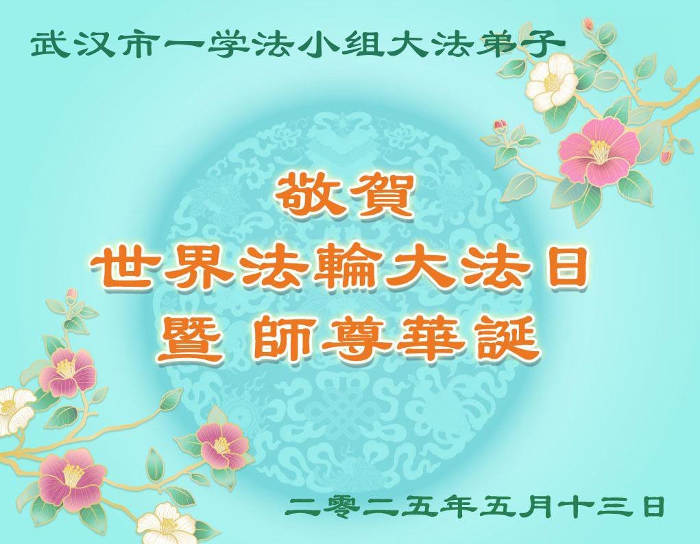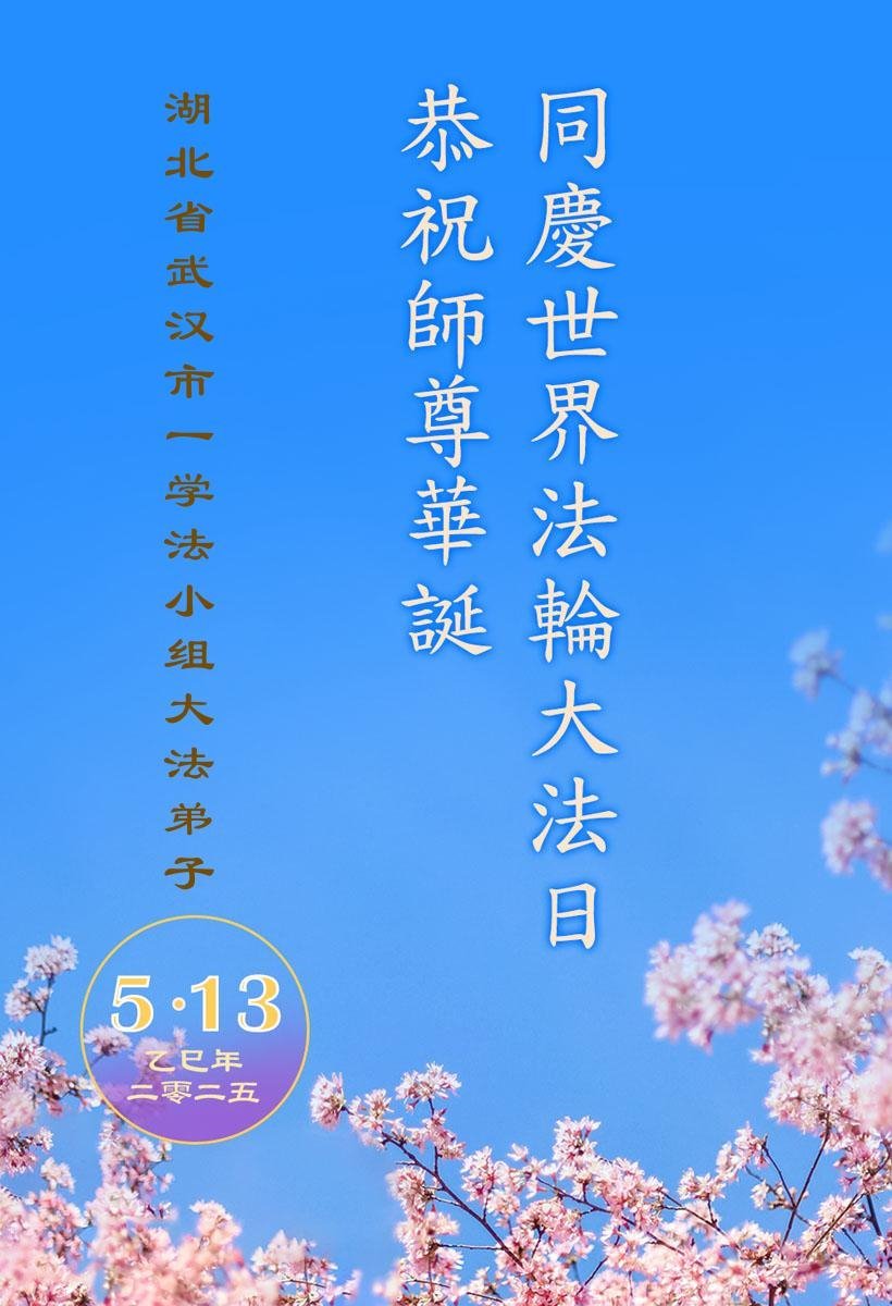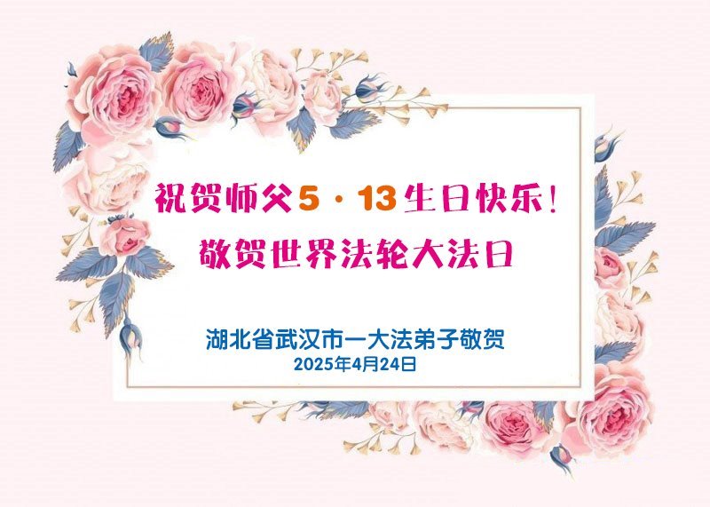 【明慧网二零二五年五月十日】 湖北省武汉市武昌区一三人学法小组大法弟子恭祝师尊华诞!恭贺法轮大法洪传三十三周年!