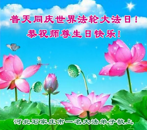 恭贺世界法轮大法日暨师尊华诞! 河北省石家庄长安区大法弟子敬上 河北省石家庄藁城区一老年大法弟子恭贺世界法轮大法日暨师尊华诞!