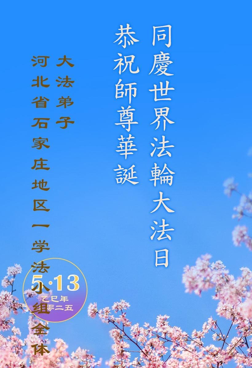 【明慧网二零二五年五月十日】 河北石家庄桥西区一学法小组大法弟子恭祝师尊生日快乐!