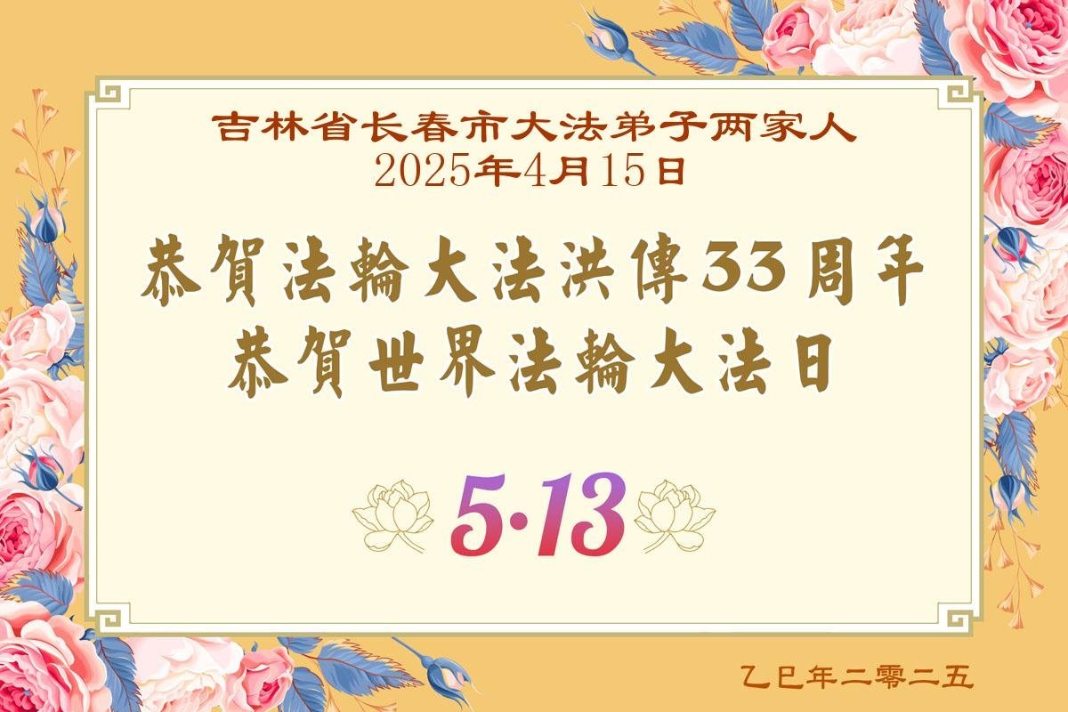 吉林省长春市大法弟子两家人恭贺法轮大法洪传33周年!