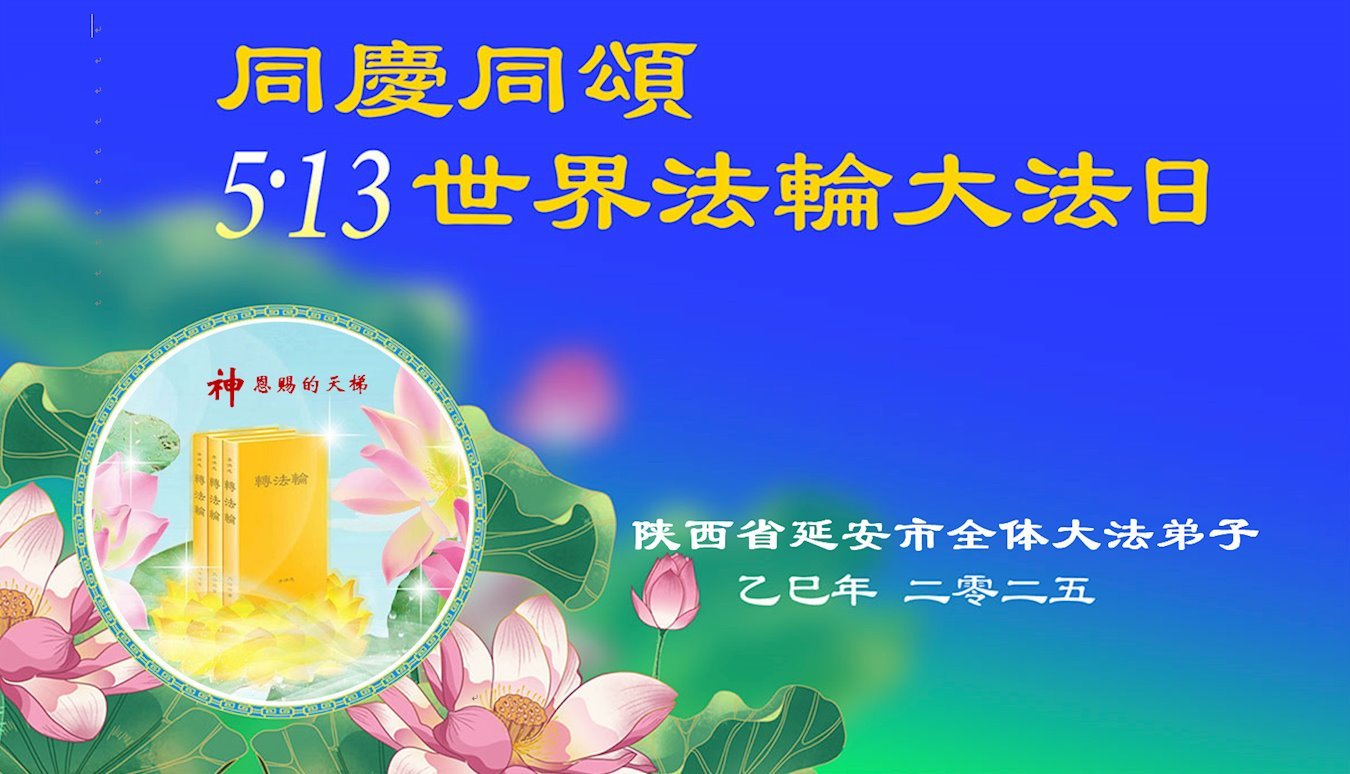 《转法轮》是神圣的师父赐予我们的天梯,万分宝贵,我们要用心珍惜,学好法,修好自己,多救人,跟师父回家。 陕西延安市大法弟子叩拜 陕西省延安市大法弟子同庆同颂5.13世界法轮大法日!