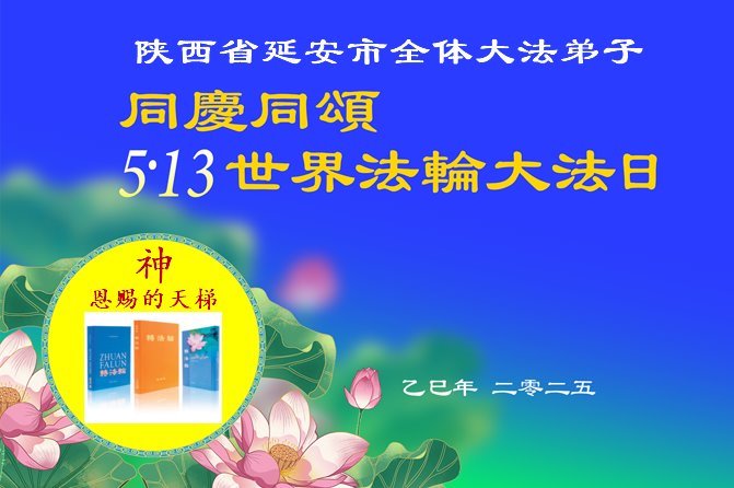 陕西省延安市大法弟子同庆同颂5.13世界法轮大法日!