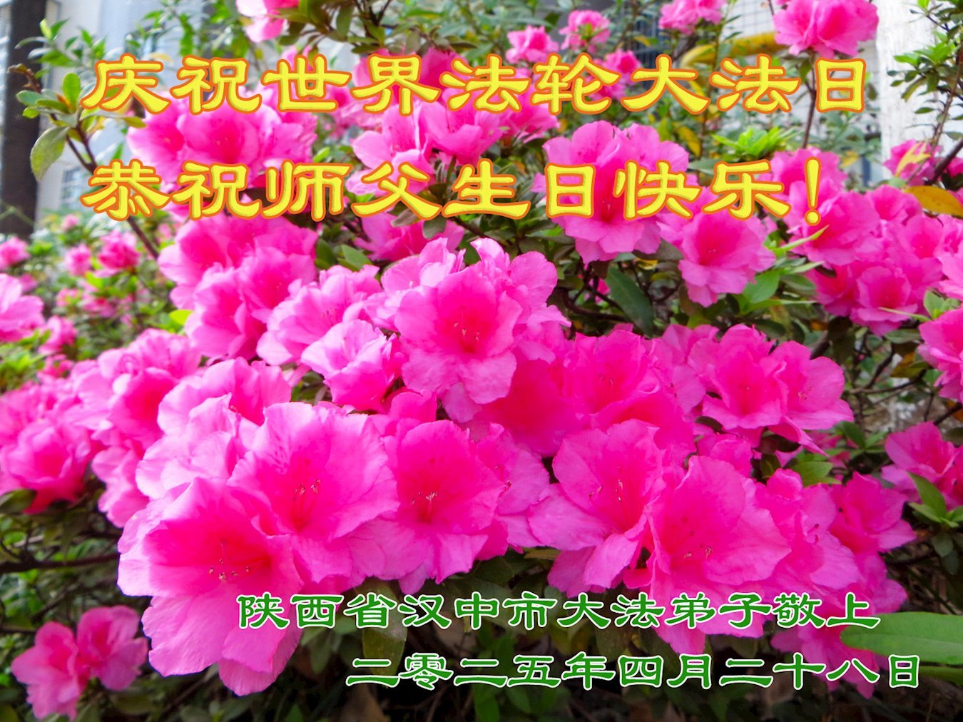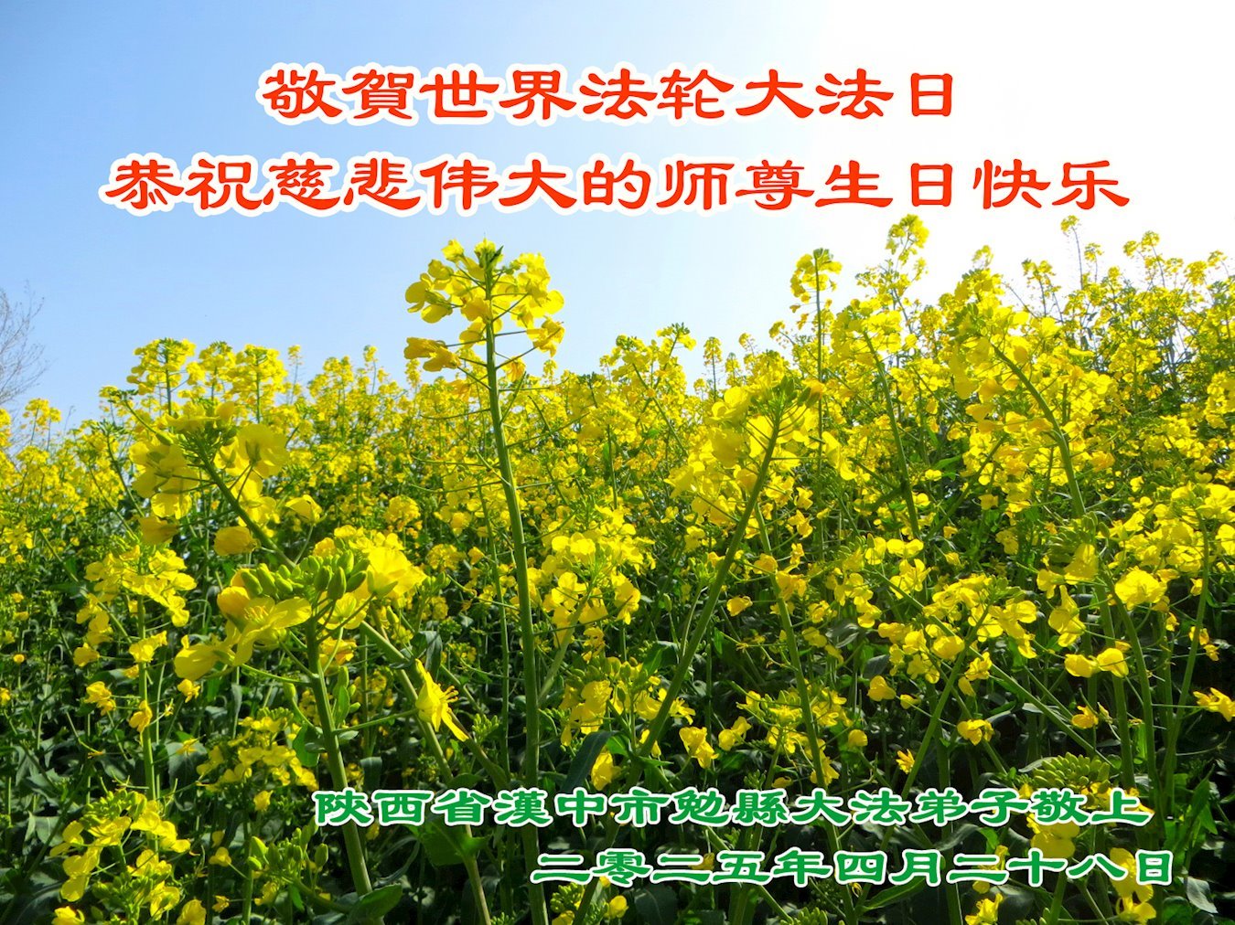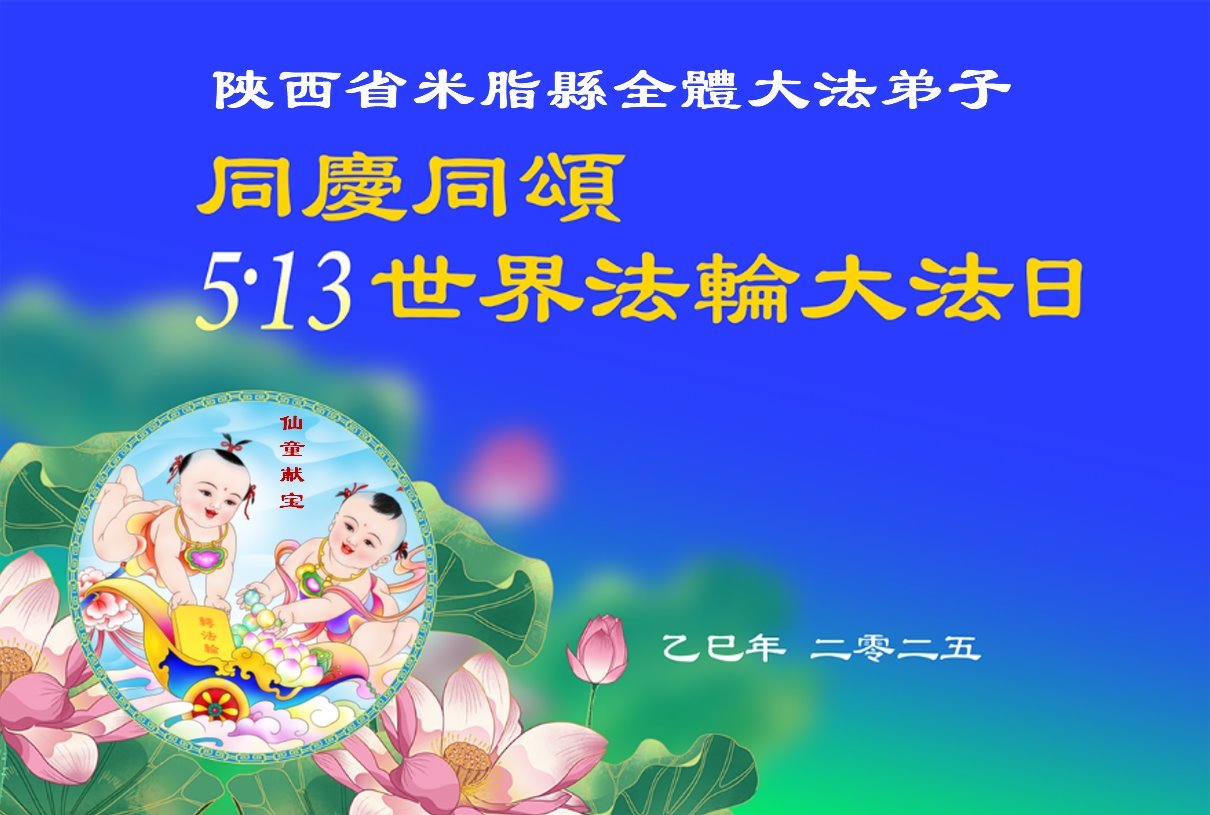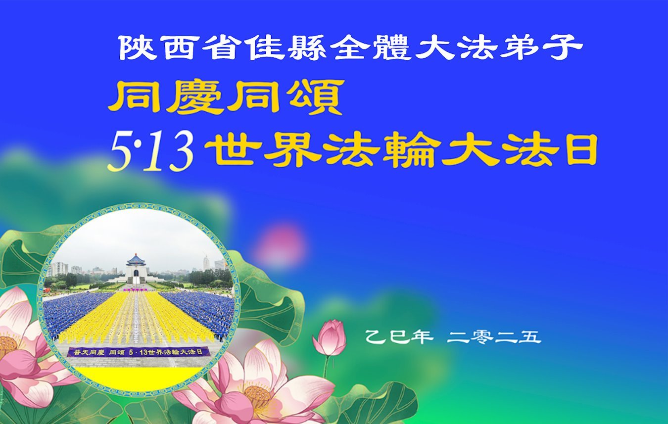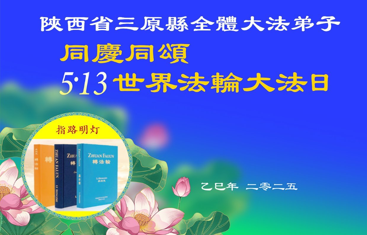 恭贺二零二五年世界法轮大法日暨师父华诞! 陕西省佳县大法弟子敬上 二零二五年四月二十五日 陕西省咸阳市三原县大法弟子同庆同颂5.13世界法轮大法日!